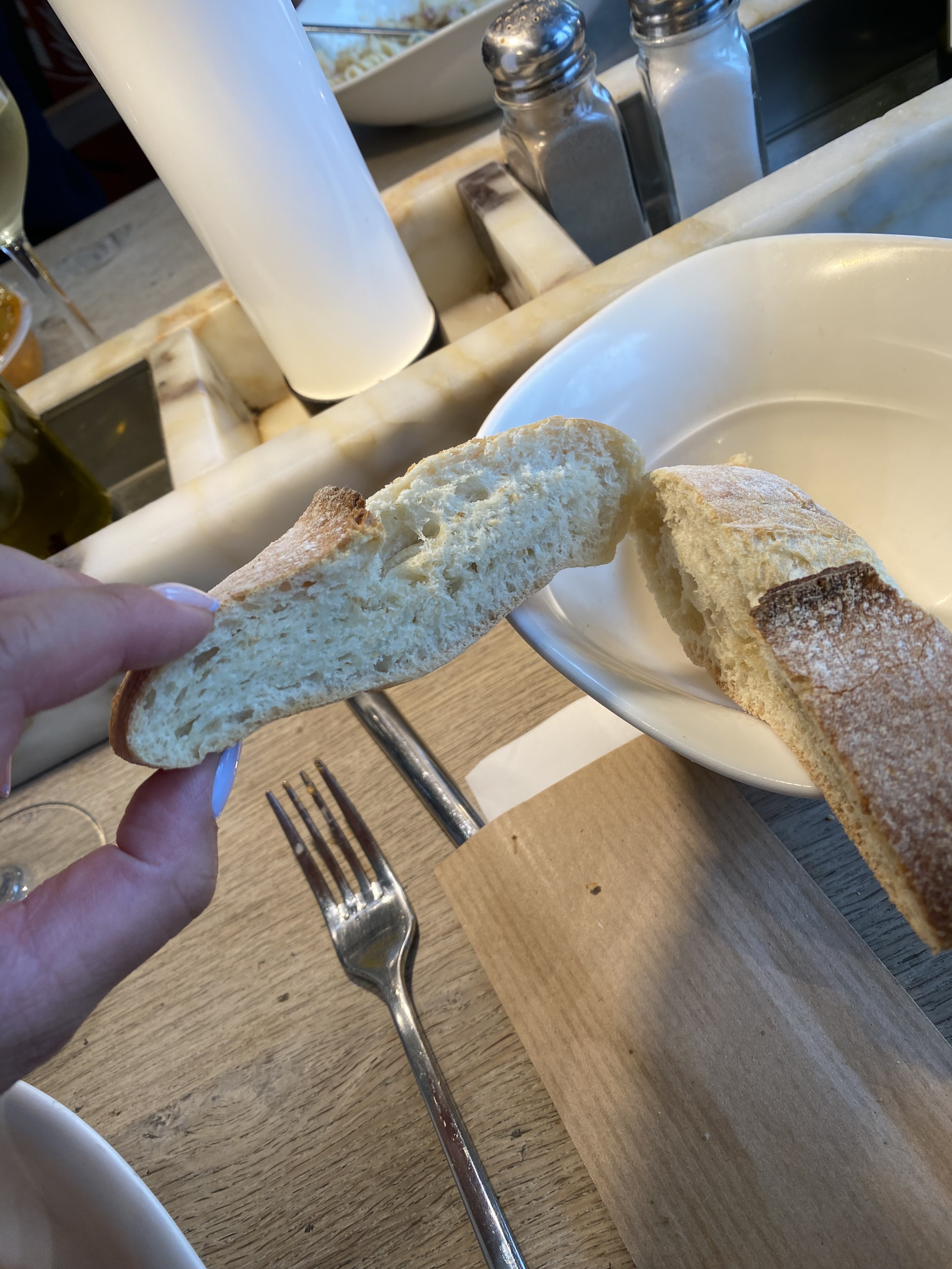 Que dire… un service lamentable. Le premier accueil a été plutôt correct, mais le reste, un fiasco, jamais vu ça de ma vie. Lorsque je vais pour payer, il n’y a personne à la caisse. Le monsieur arrive, pas un bonjour, avec un humour gênant et qui laisse à désiré. Nous attendons nos plats pendant plus de 40 minutes, nous avons dû aller réclamer pour « accélérer », la salle était quasiment vide. Des clients arrivés après nous, sont servis avant nous. 40 minutes avant d’avoir des couverts, d’avoir la bouteille de vin que nous avions payé. De plus, le barman qui nous a ramené la bouteille, s’est trompé de bouteille, et lorsque nous lui ramenons la bouteille, il nous affirme que c’est bien celle là. Il nous a ramené du vin rouge, alors qu’on a pris du blanc. Sur le ticket il était bien indiqué « chardonnay ». Le barman ne savait même pas lequel était le chardonnay. Il a montré à mon conjoint lequel il voulait. Les verres étaient d’une saleté sans nom. Le barman m’a ramené un verre avec encore le rouge à lèvre de la cliente précédente, et ose me demander si je veux qu’il me change le verre. Le verre suivant qu’il m’a ramené, était tout autant sale. La nourriture était correcte, sans plus, chers pour ce que c’est. Je m’attends a recevoir des pâtes chaudes lorsque j’attends plus de 40 minutes. Le pain était posé sur le comptoir depuis un moment. On a déjà testé un Vapiano, on avait été déçu. On a voulu redonné une chance, PLUS JAMAIS.