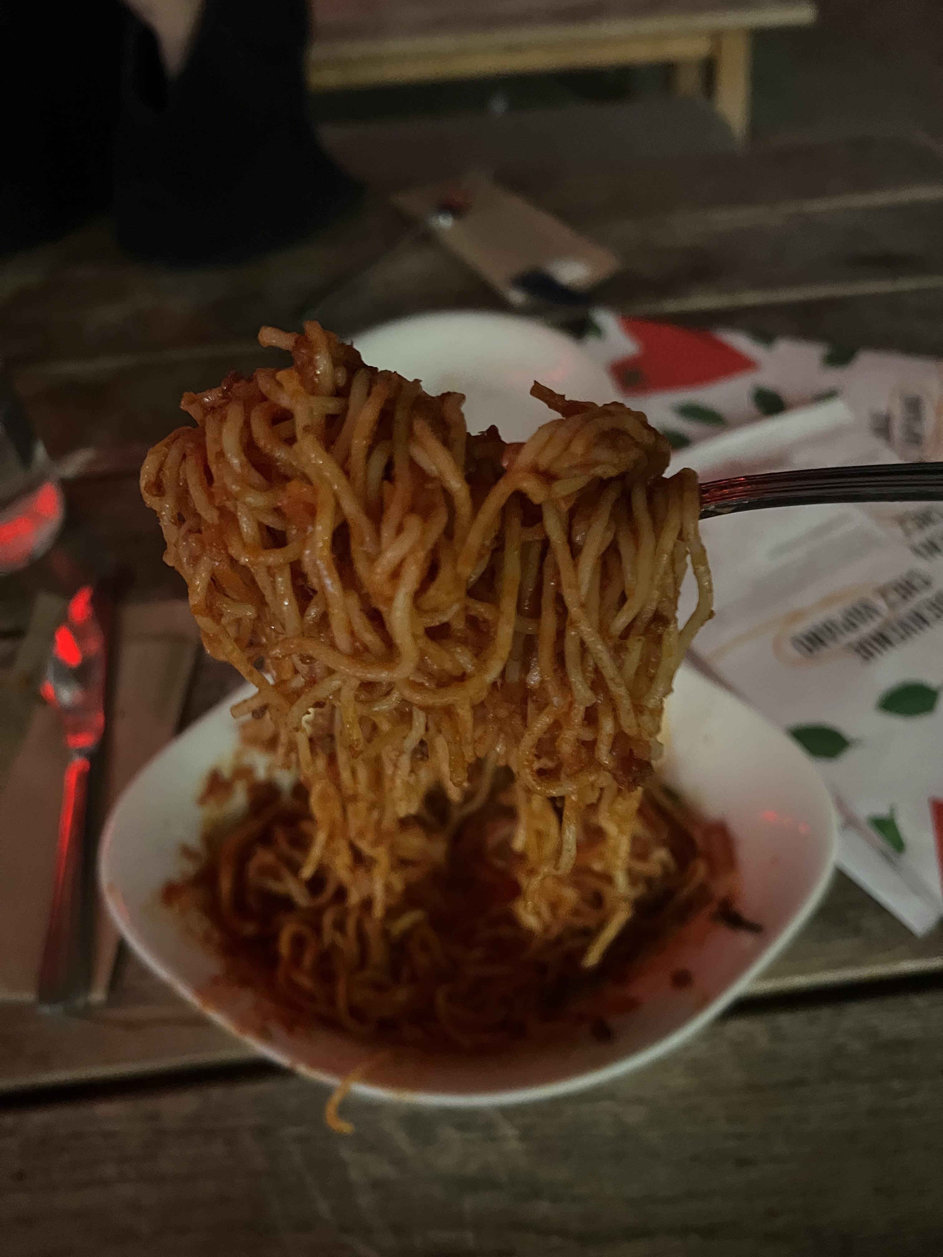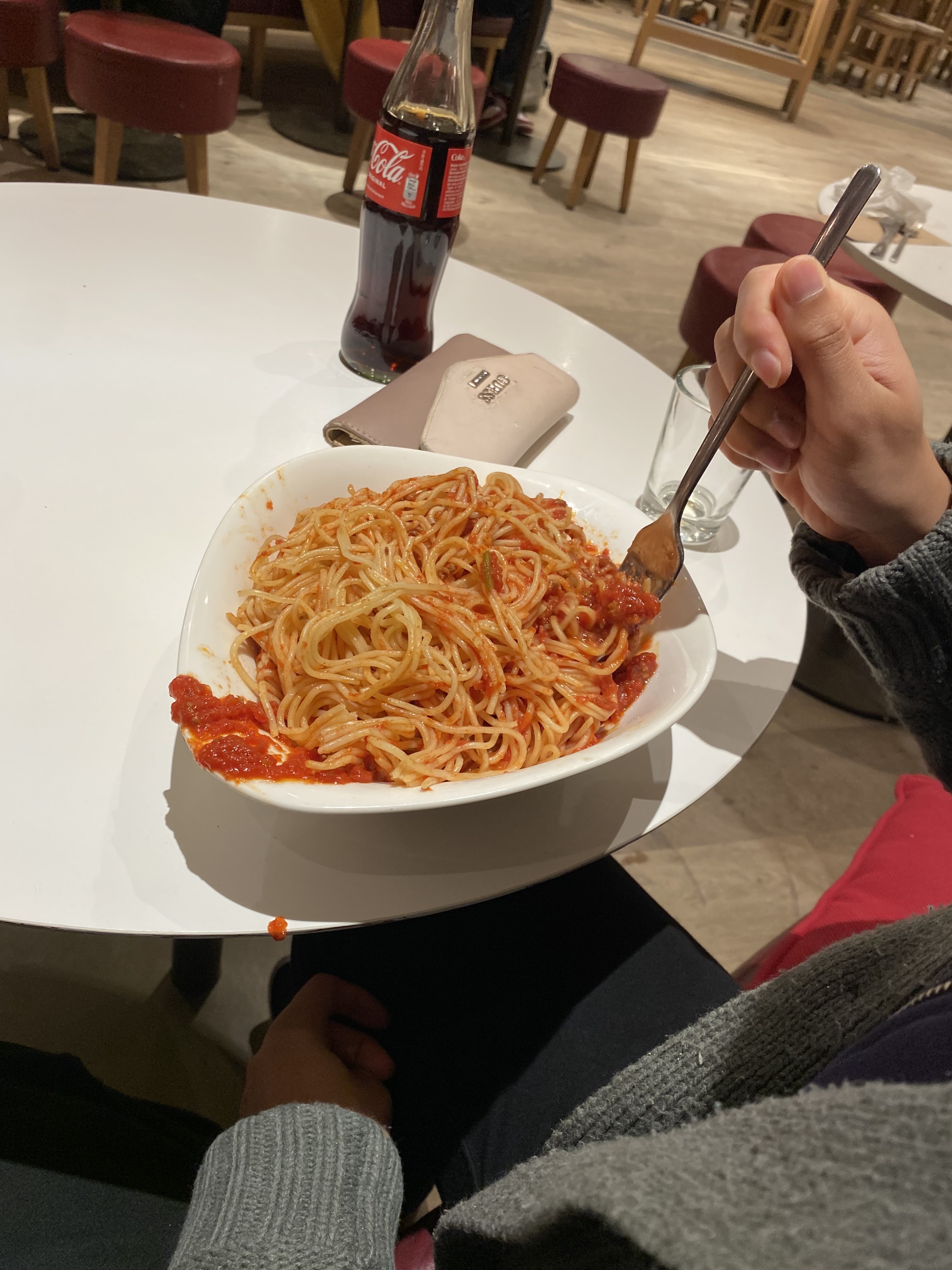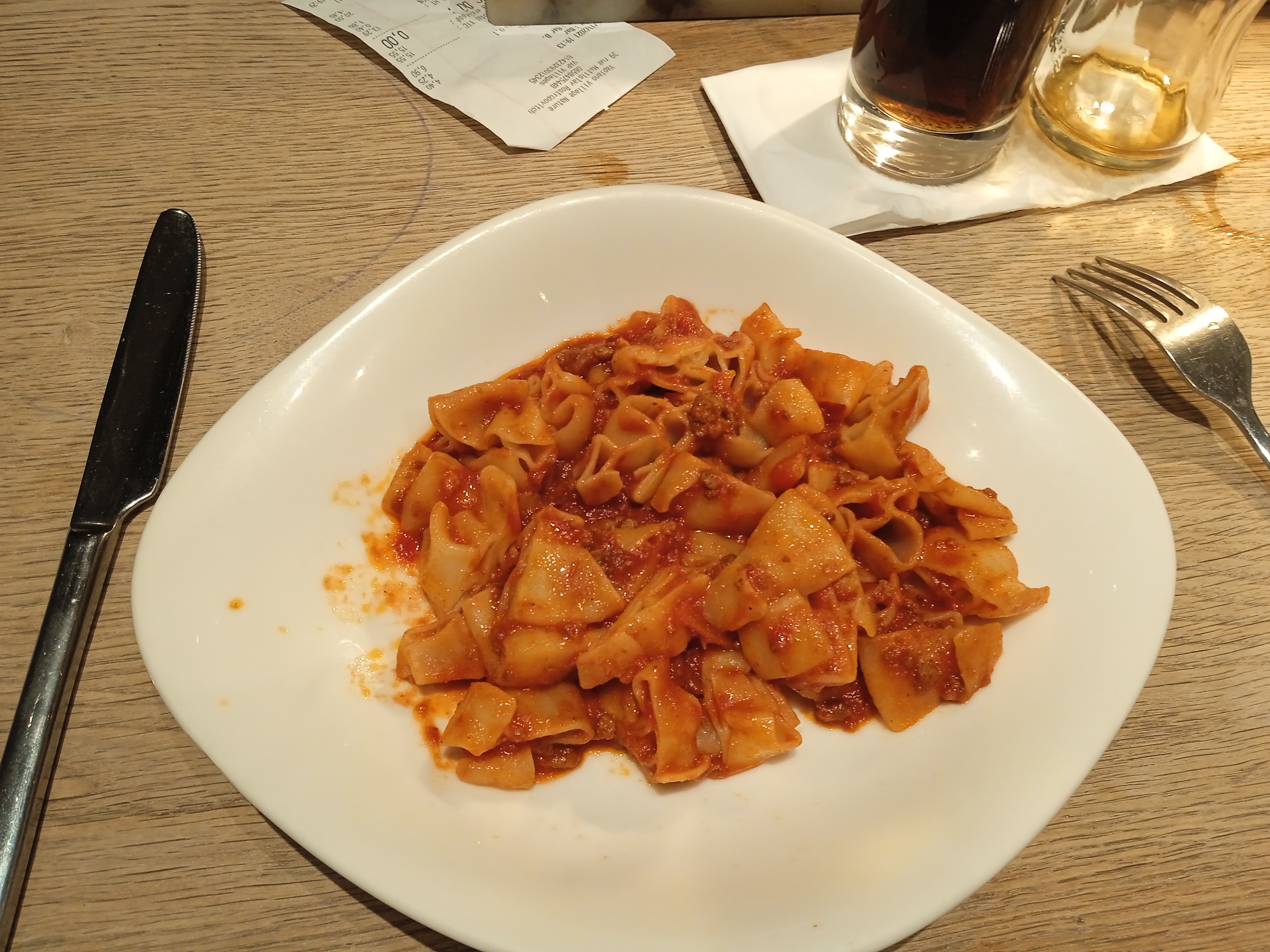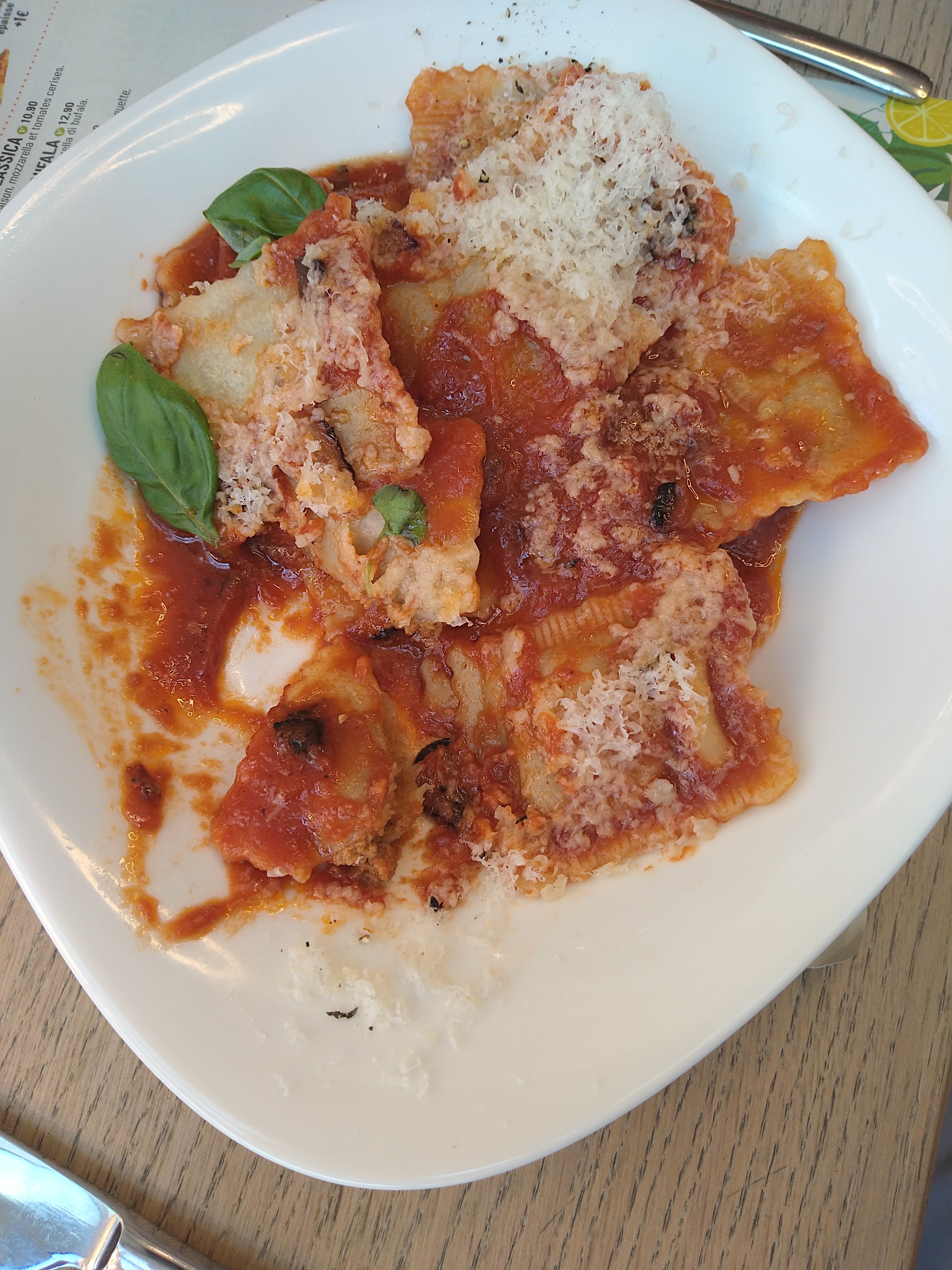 Nous sommes dessus. Déjà on nous fait entrer mais s’était blinder de monde donc on nous fait attendre au moins plus de 10 min avant qu’on aille trouver une table. Les tables été vraiment petite et on se retrouve à coter des gents. On vous dit même pas qui faut commander sur votre téléphone et avant qu’on vous serve votre commande vous devez déjà payer les prix sont hyper chers 16 euros pour des pâtes bolo et si tu rajoute un supplément sa te fais plus 3 euros la pizza ete cherd aussi. Les plats arrive mon copain goûte c’est pâtes bolo. Elle sont même pas assez cuite limite on aurait dit s’était fait à la vas vite. Parcontre la pizza été très bonne mais nous somme dessus pour les pâtes bolo. Il a fallit tous vomir tellement s’était immangeable !
