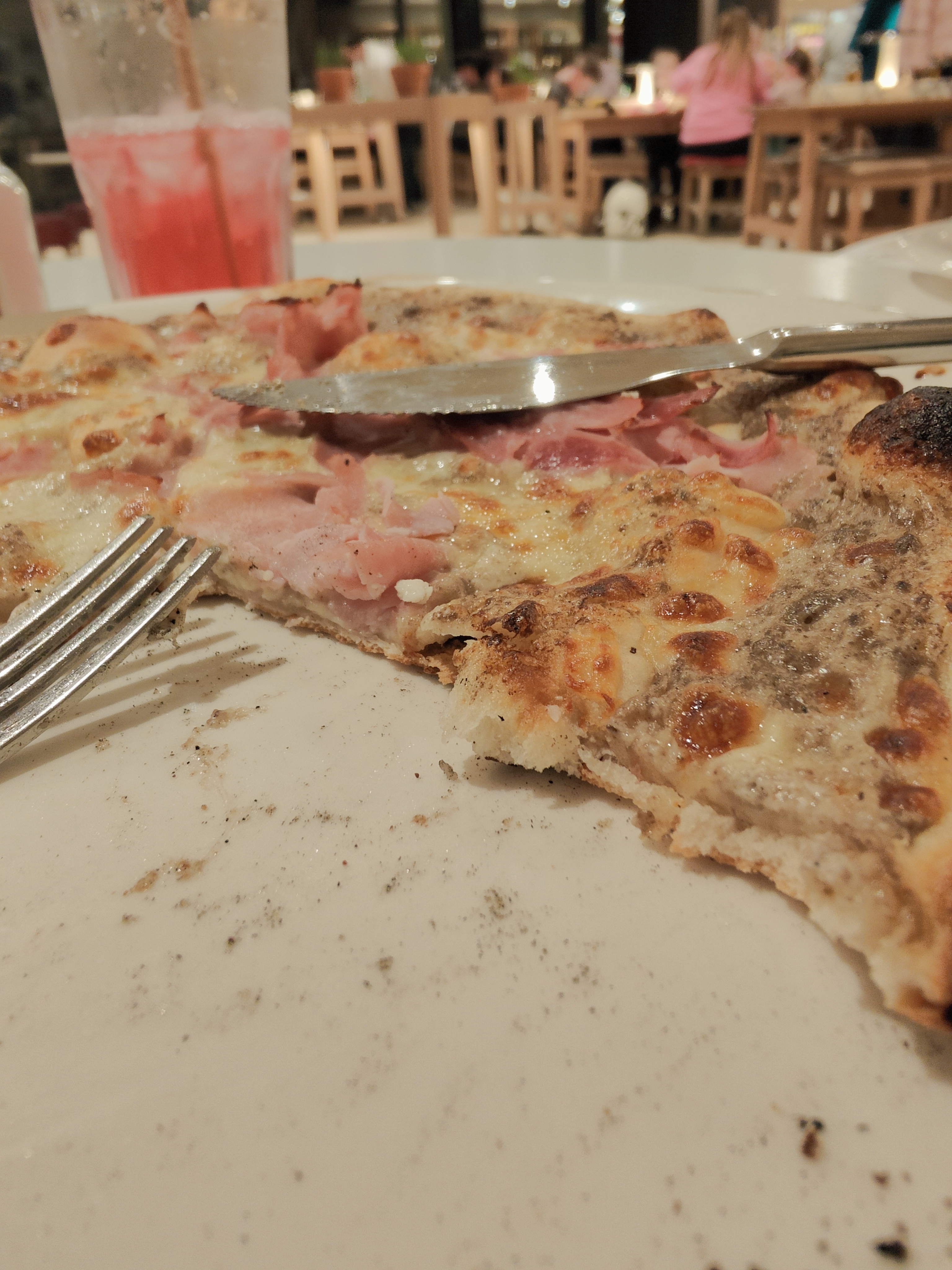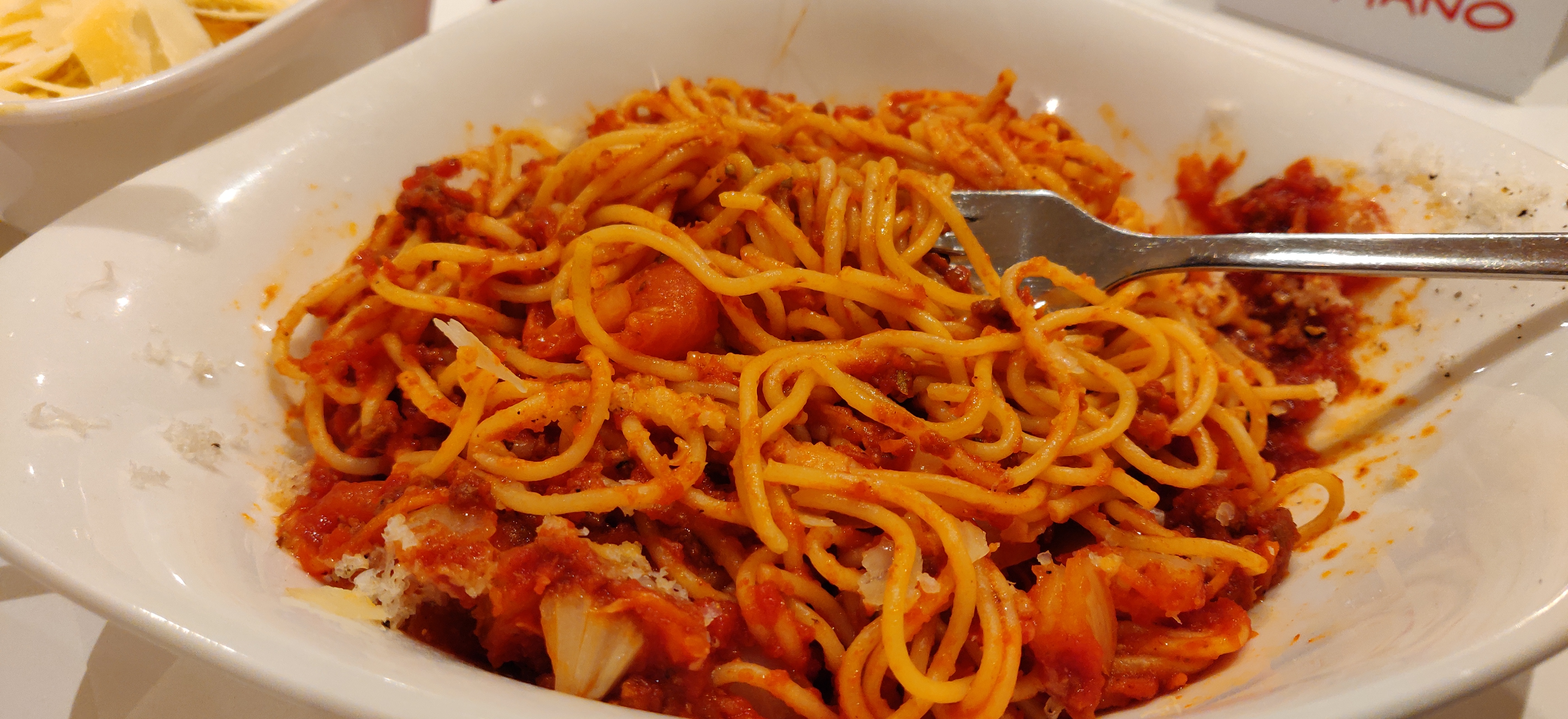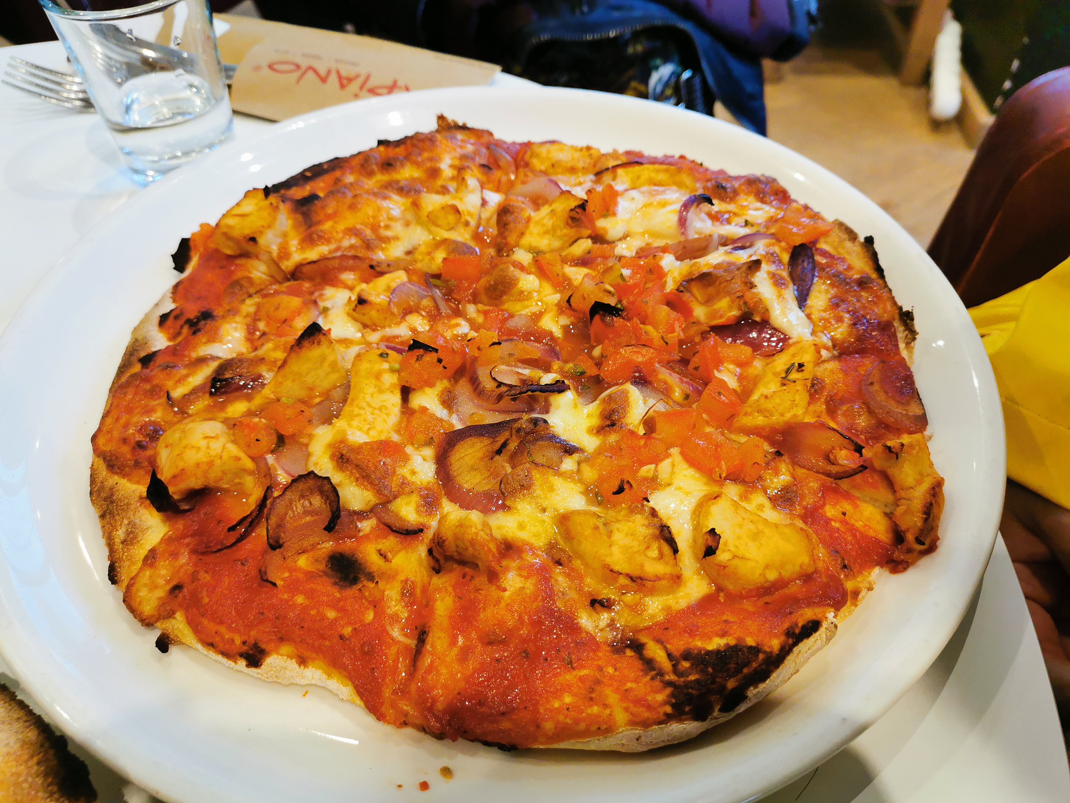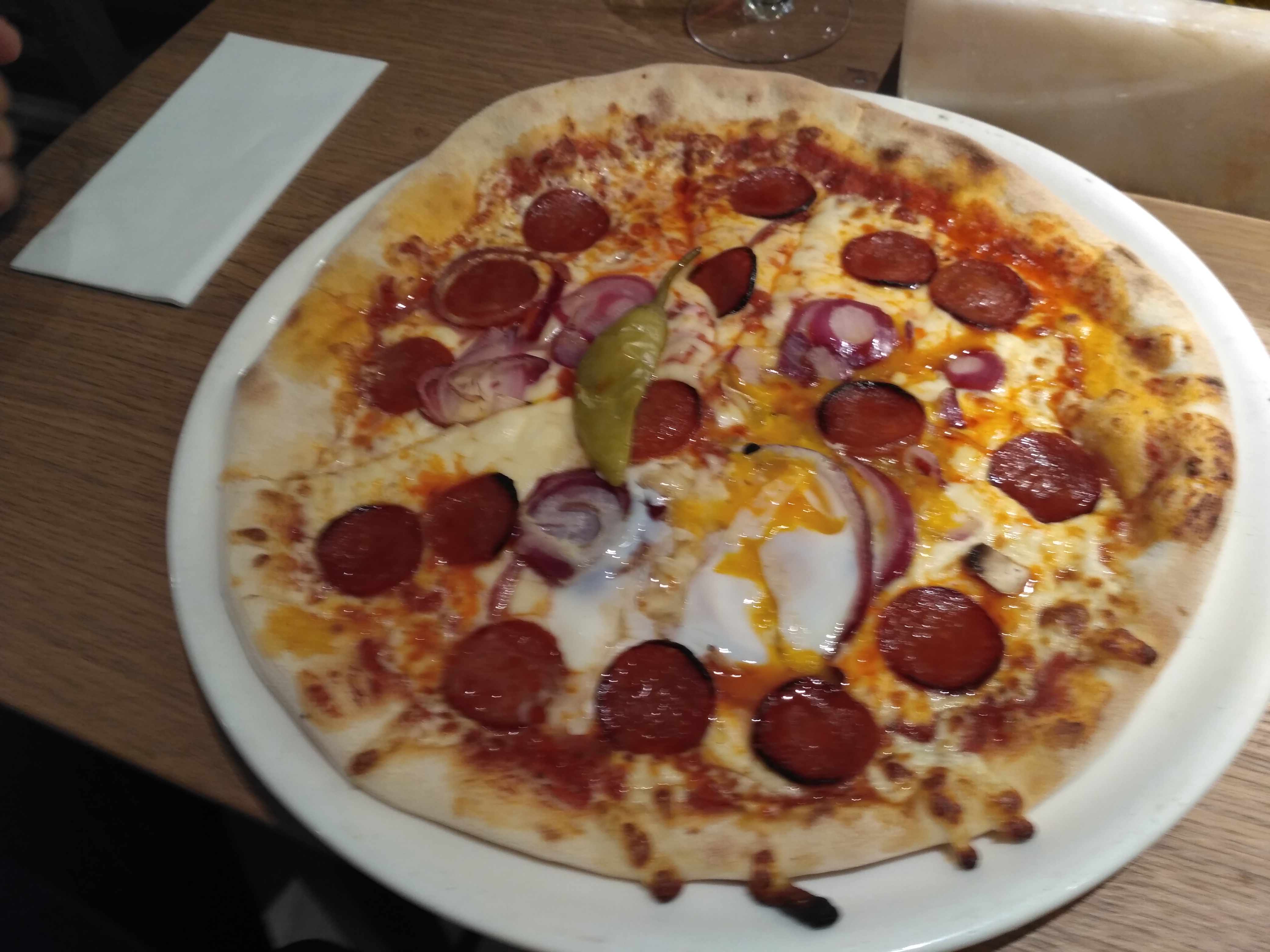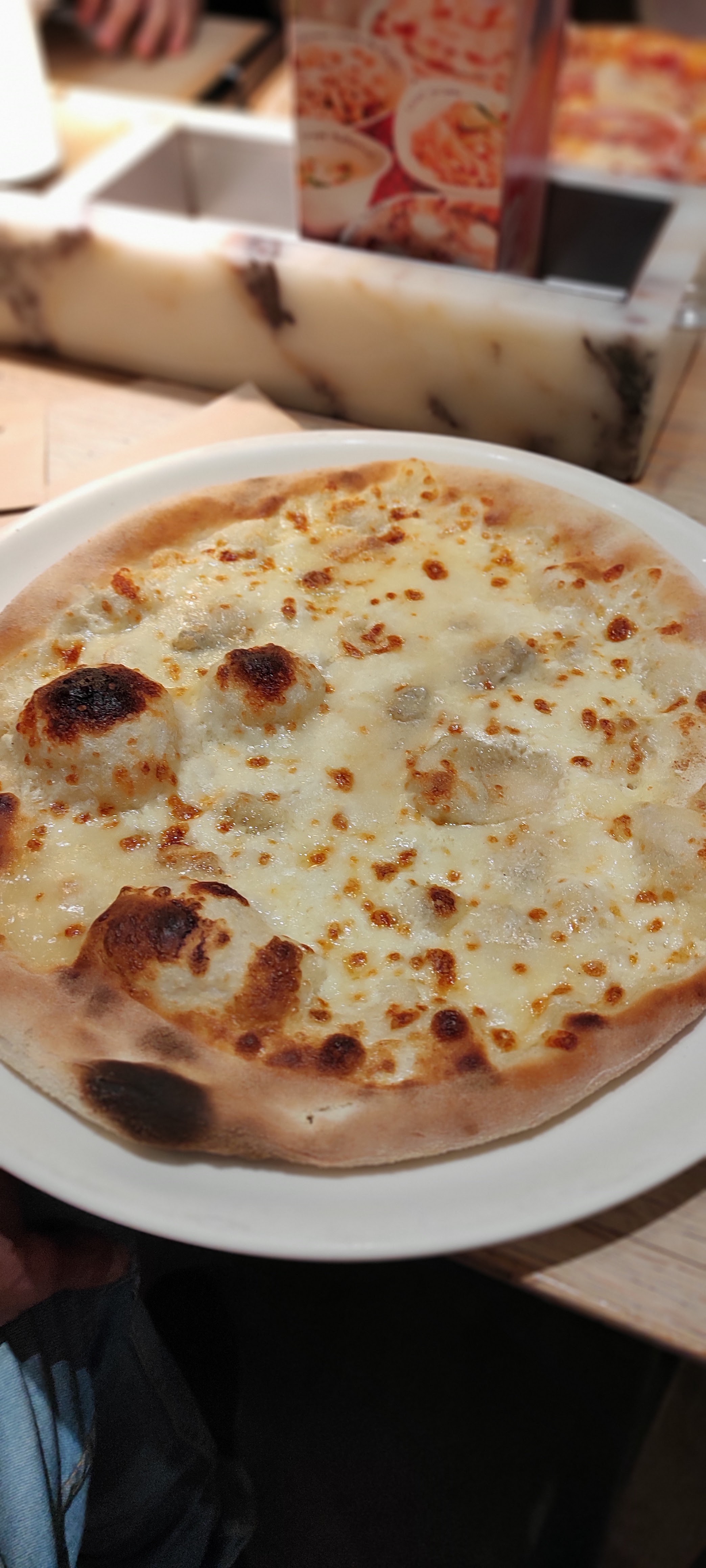 Nous sommes dessus. Déjà on nous fait entrer mais s’était blinder de monde donc on nous fait attendre au moins plus de 10 min avant qu’on aille trouver une table. Les tables été vraiment petite et on se retrouve à coter des gents. On vous dit même pas qui faut commander sur votre téléphone et avant qu’on vous serve votre commande vous devez déjà payer les prix sont hyper chers 16 euros pour des pâtes bolo et si tu rajoute un supplément sa te fais plus 3 euros la pizza ete cherd aussi. Les plats arrive mon copain goûte c’est pâtes bolo. Elle sont même pas assez cuite limite on aurait dit s’était fait à la vas vite. Parcontre la pizza été très bonne mais nous somme dessus pour les pâtes bolo. Il a fallit tous vomir tellement s’était immangeable !