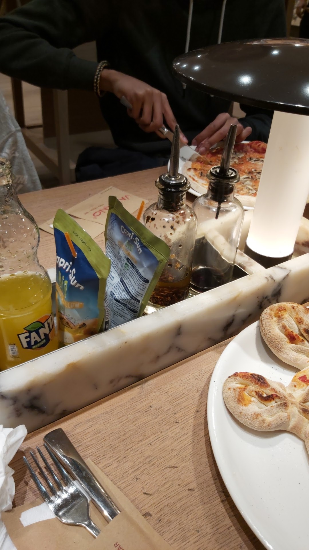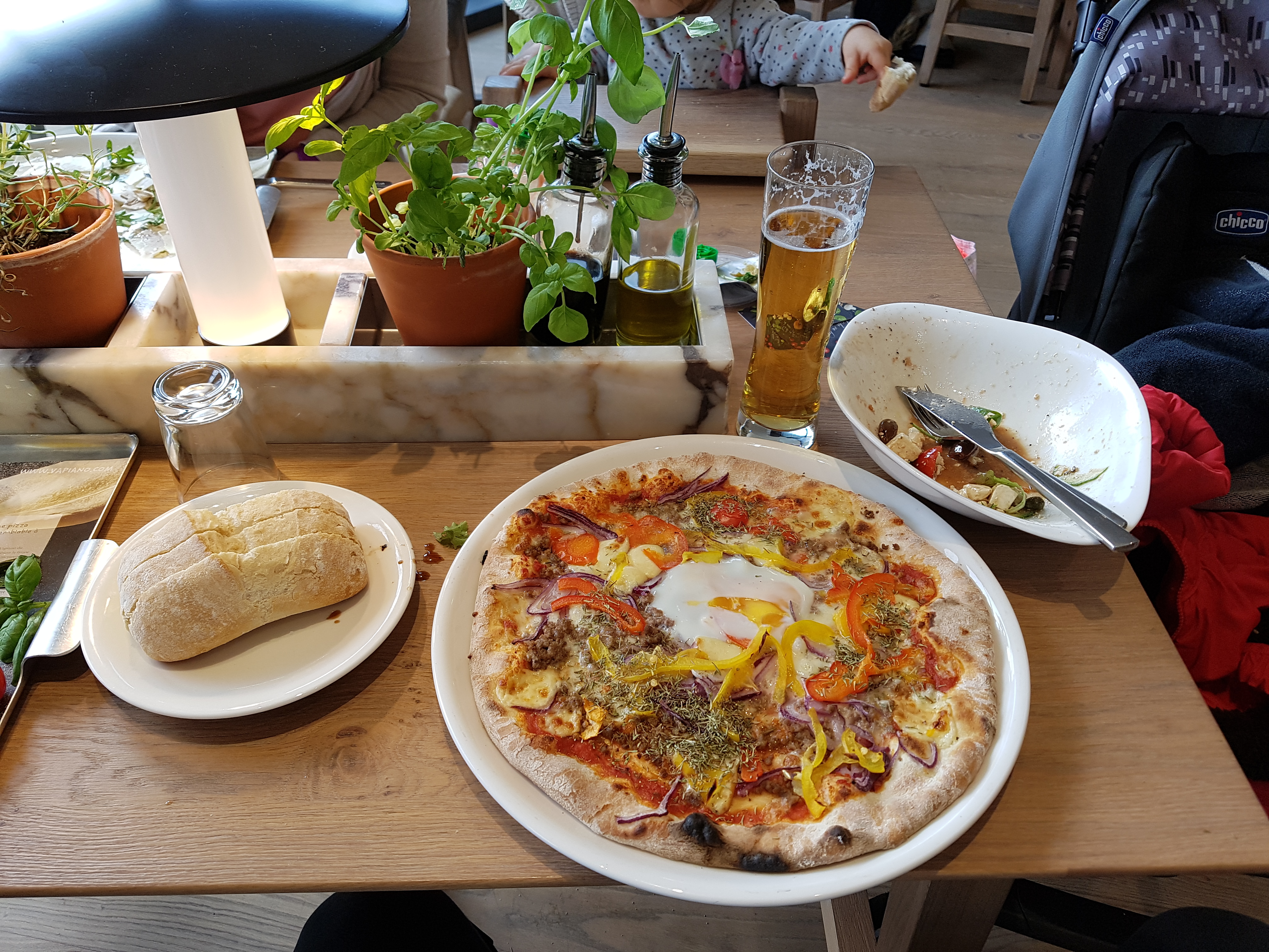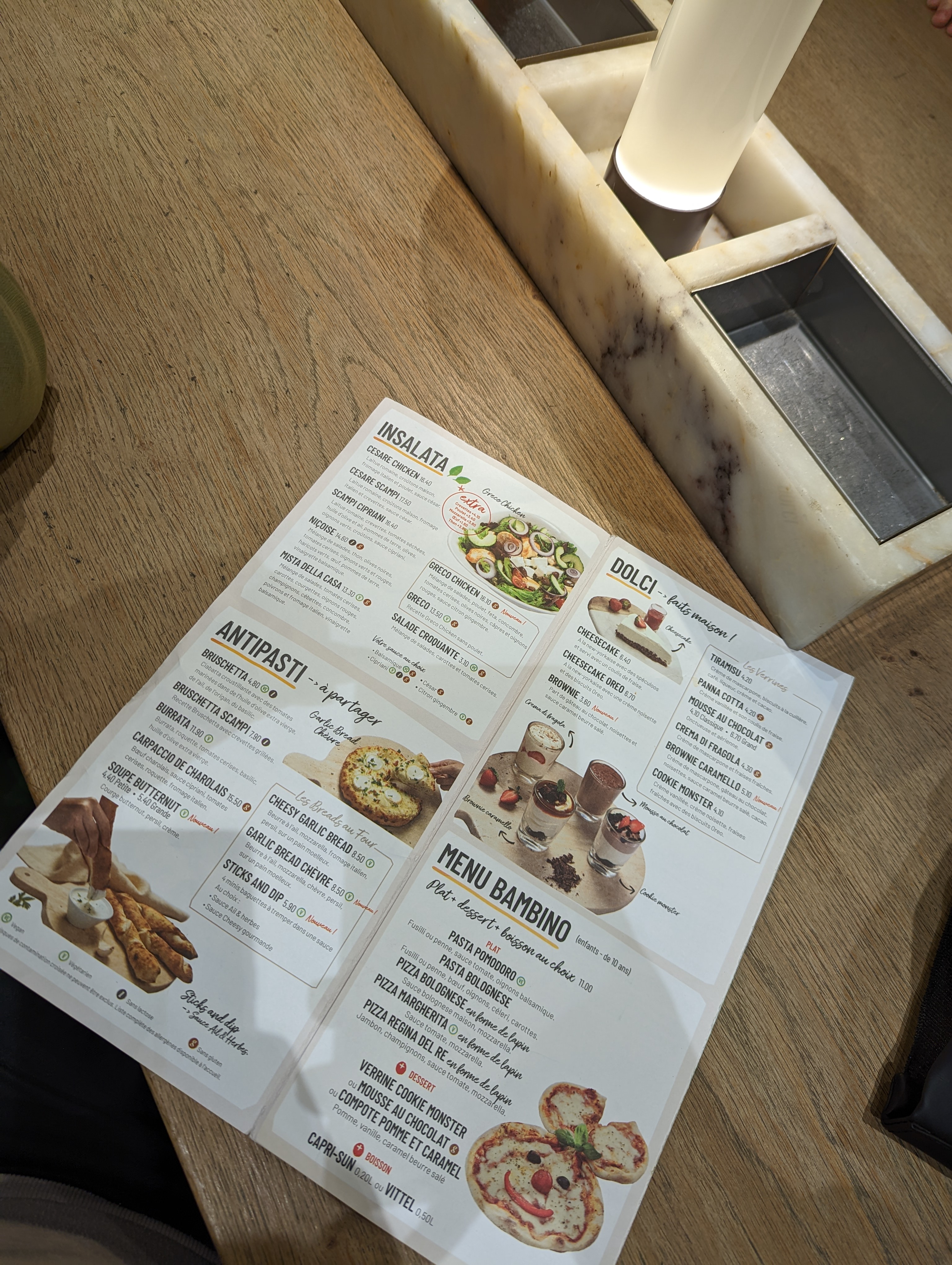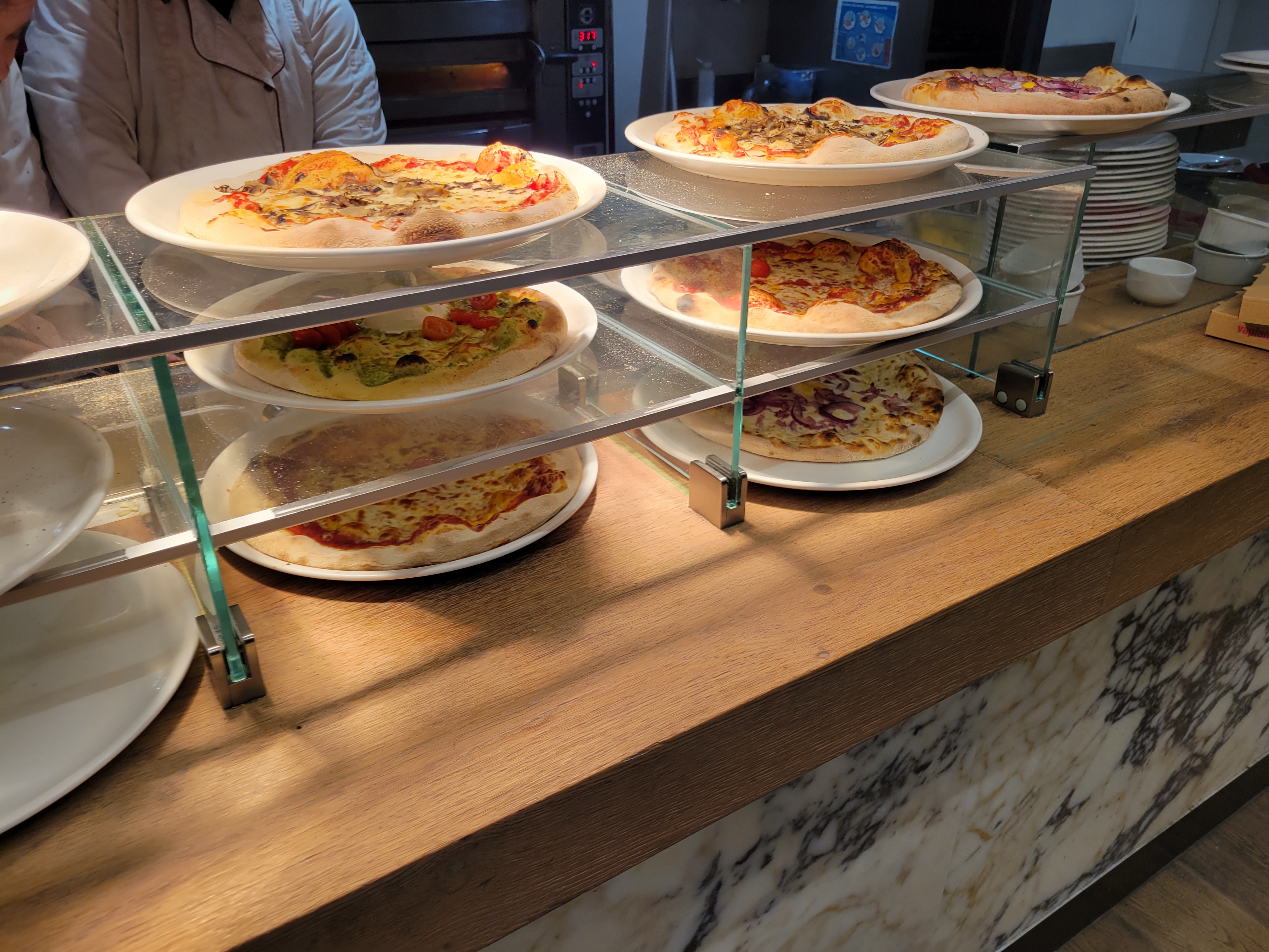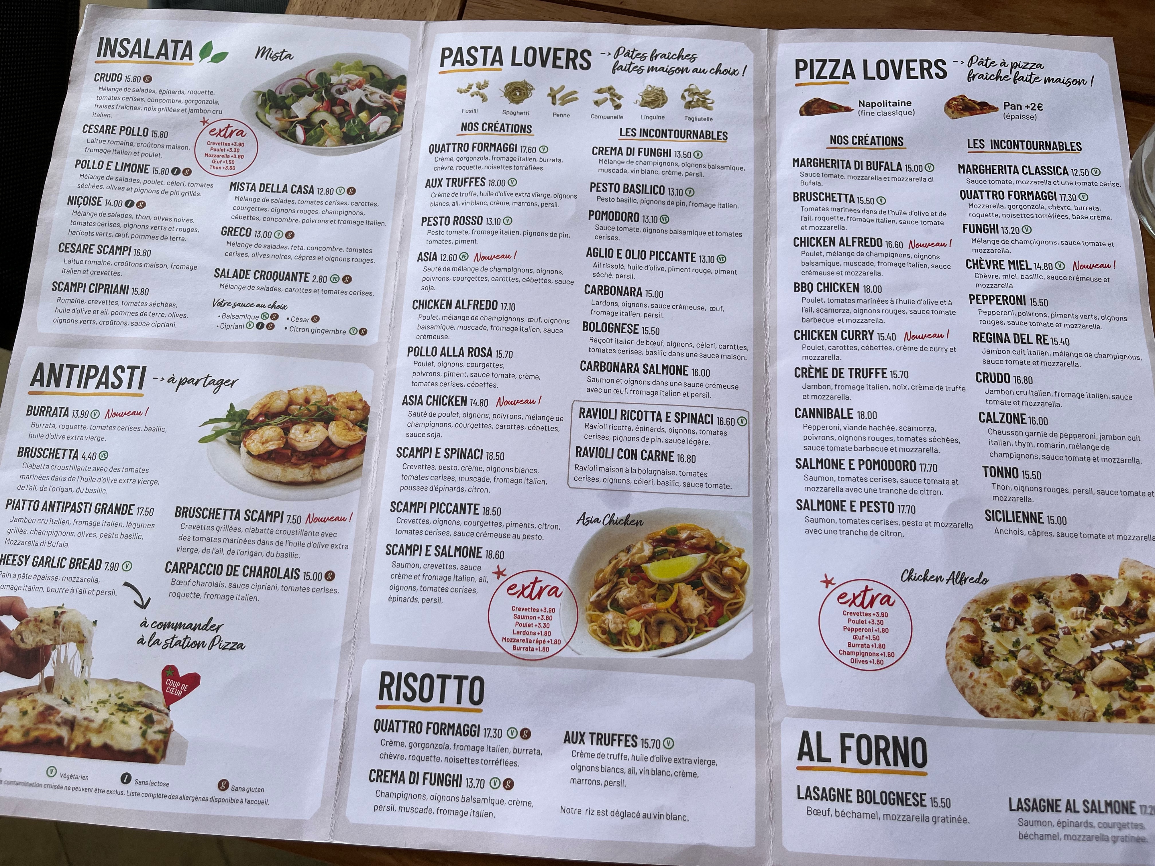 C'est un très bon restaurant italien qui est bien éclairé avec les grands vitrines et la décoration est ravissante ! On a testé les pizzas du moment éditions limitées, c'est très délicieux, la pâte est croustillante et avec beaucoup d'ingrédients au-dessus vu sur les photos ! Dans la salle beaucoup d'espace pour la table de 4 ou 10 personnes, c'est conviviale de partager en famille, il y a un aire de jeu pour les enfants dans le coin. Le service est sympa et l'équipe efficace, à recommander si vous cherchez un endroit pour manger tout au long de la journée !