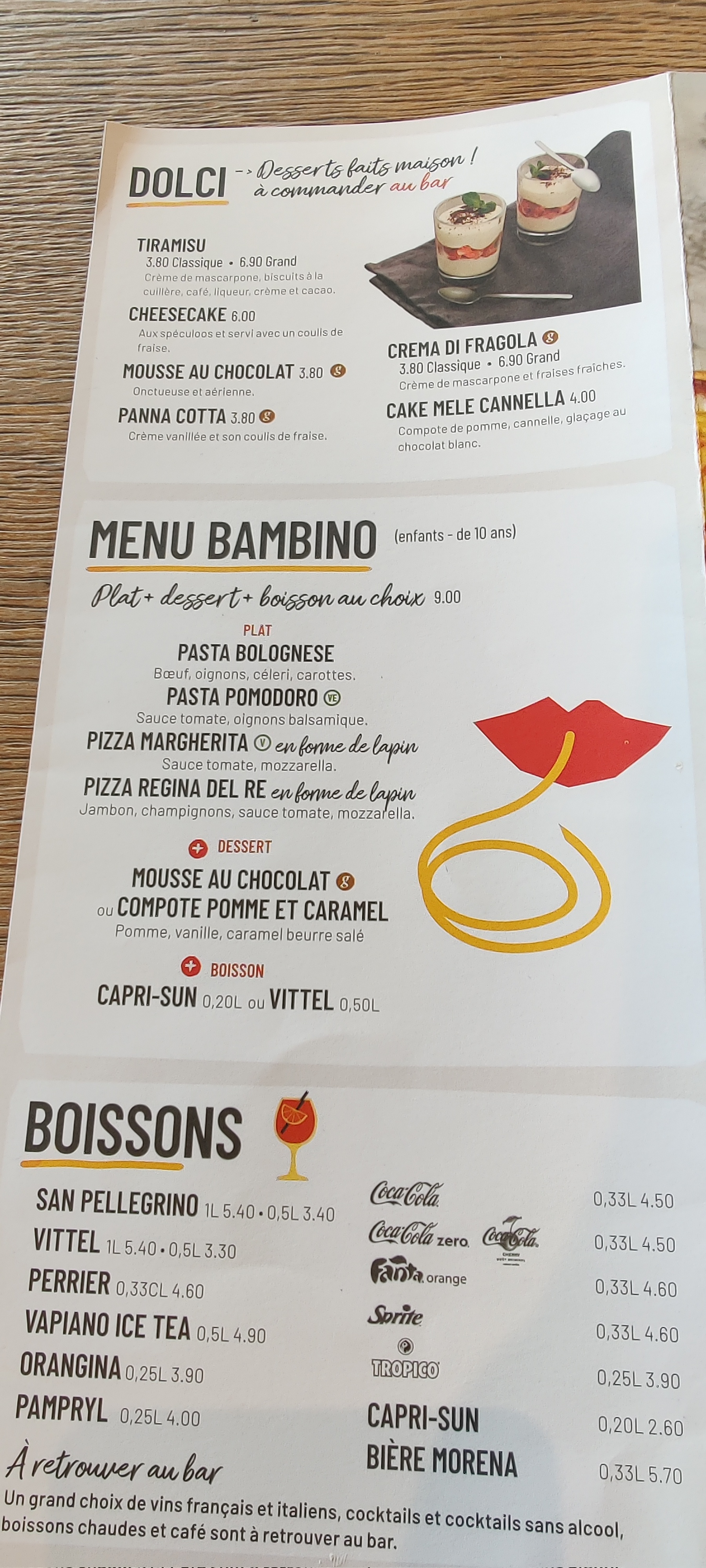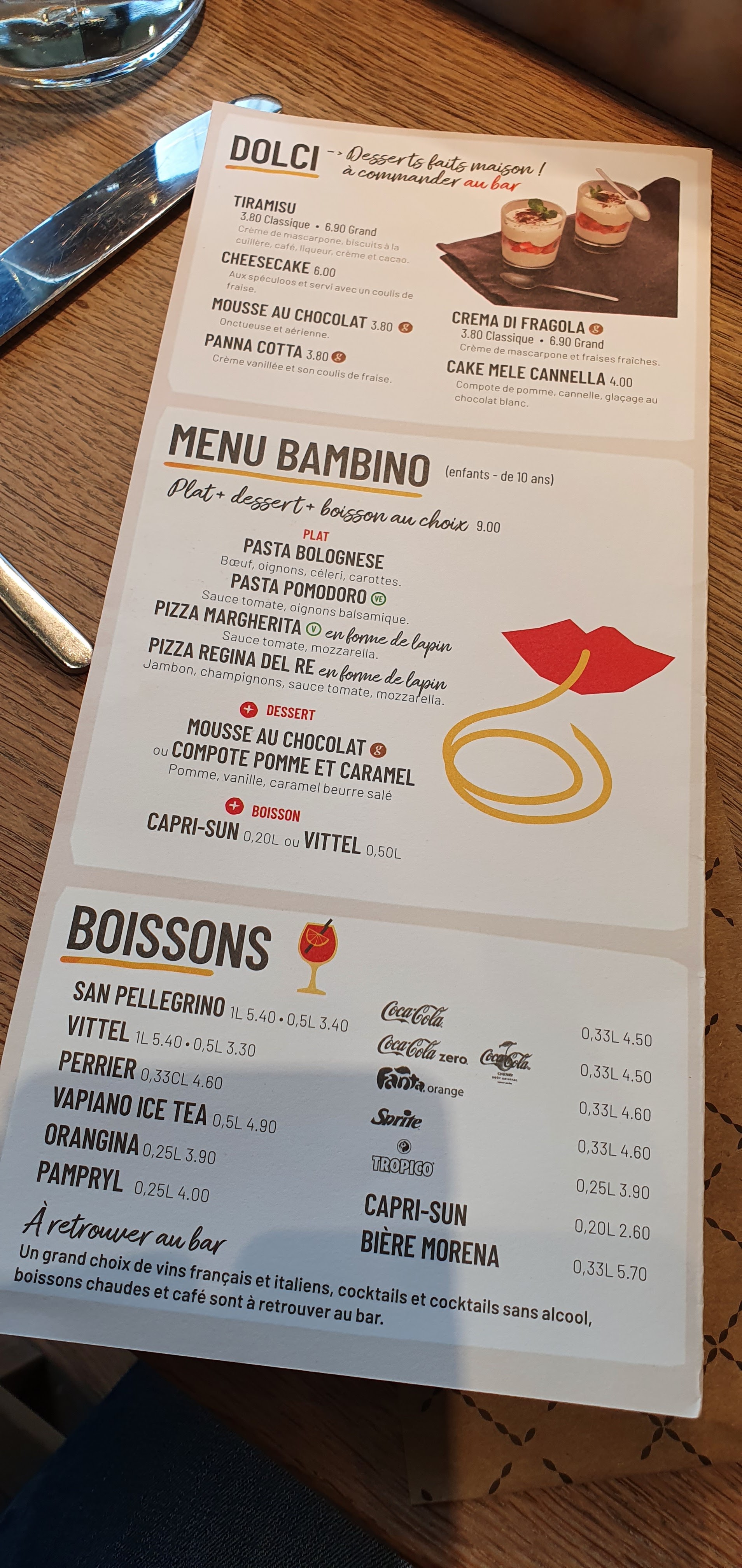 On a bien mangé. Les pâtes excellentes. Le service était super, notre serveur très sympa. Les enfants ont adoré les pizzas en forme de lapin. Top!