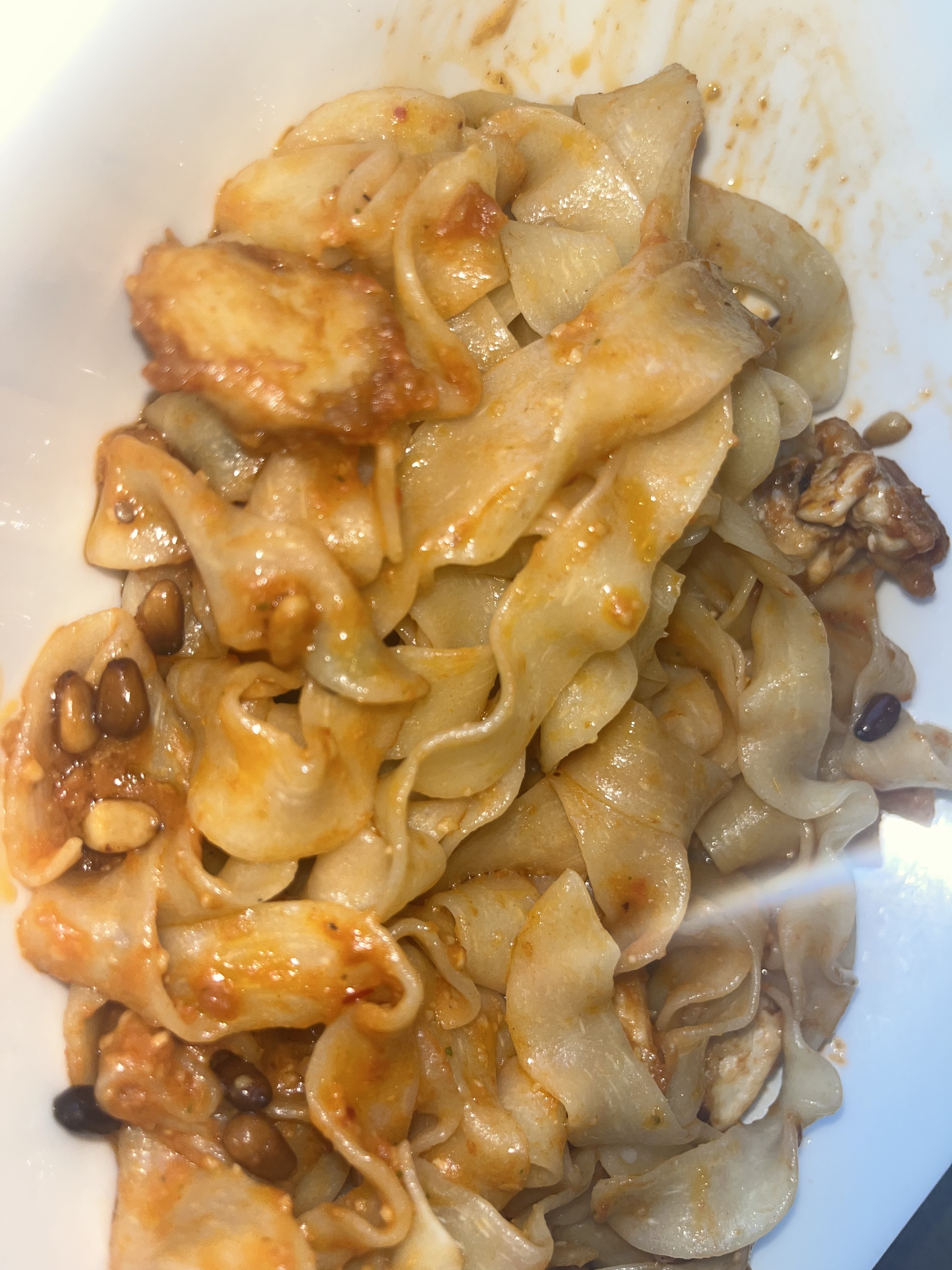 Les pâtes étaient très bien assaisonnées et pimentées. Les pizzas sont bien garnies et appétissantes 😉. Bonne idée de mettre du basilic frais 🍃sur les tables 😄