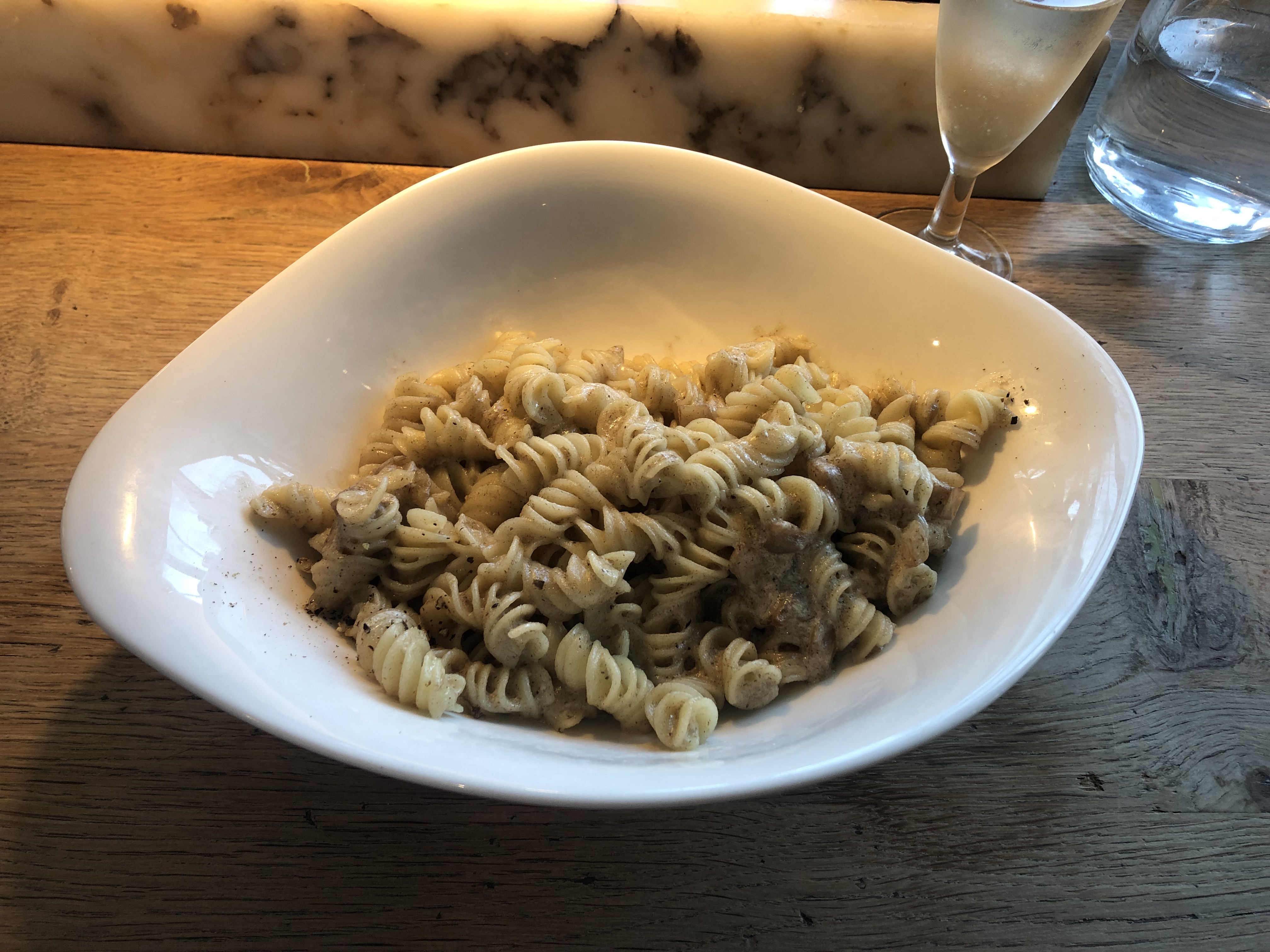 Les pâtes au poulet truffes sont excellentes. Nous avons été servis rapidement. Un Merci a Clément