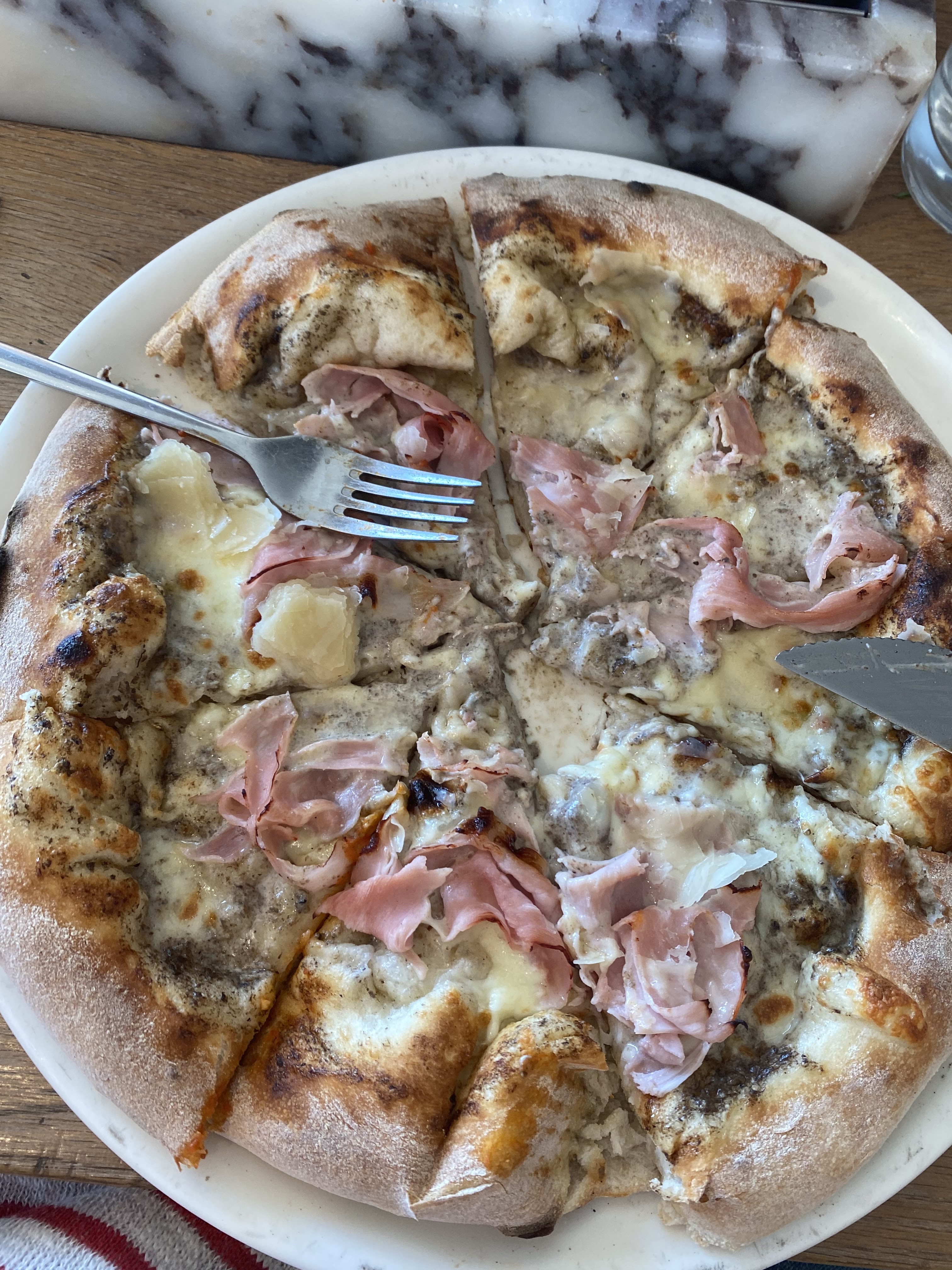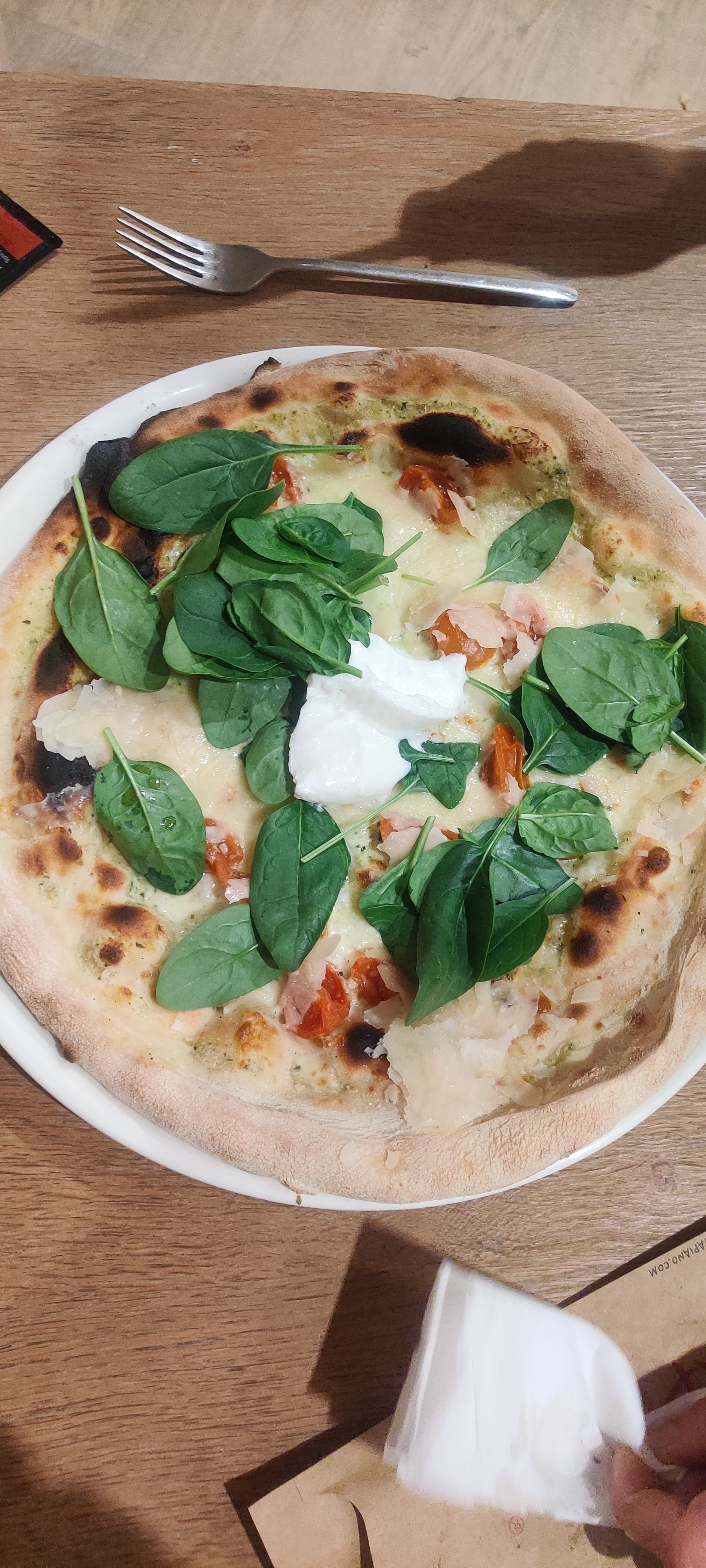 Bonjour à toutes et à tous, Part où commencer... En arrivant le serveur qui semble être le patron est d'une insolence et d'un rien a battre sans pareil, inrivalable ! Pour le service de couverts, excellente surprise ! Un tas de couverts est mis en plein milieu de la table et c'est aux clients de se répartir les couverts ! Invraisemblable mais vrai !!! Serveurs aussi très désagréable. Pour la cuisine, un quart de burrata sur la pizza demandé en extra et a peine un huitième semble être sur la pizza, on est plus a une autre déception de toute façon ! Par contre pizza BBQ CHICKEN était excellente je la recommande ! Nous étions 9 et une très grande majorité a adoré leurs plats ( pizza, pâte). Dans l'ensemble je ne dirais pas que je recommande ce restaurant pour son service qui, en ayant survécu durant ce repas, laisse une très mauvaise impression et créé une tension durant tout le repas. Ce fût extrêmement désagréable a très haut niveau ! Par contre la cuisine est bonne, nous étions 9 et étions servit assez rapidement. Bonne lecture à toutes et à tous !