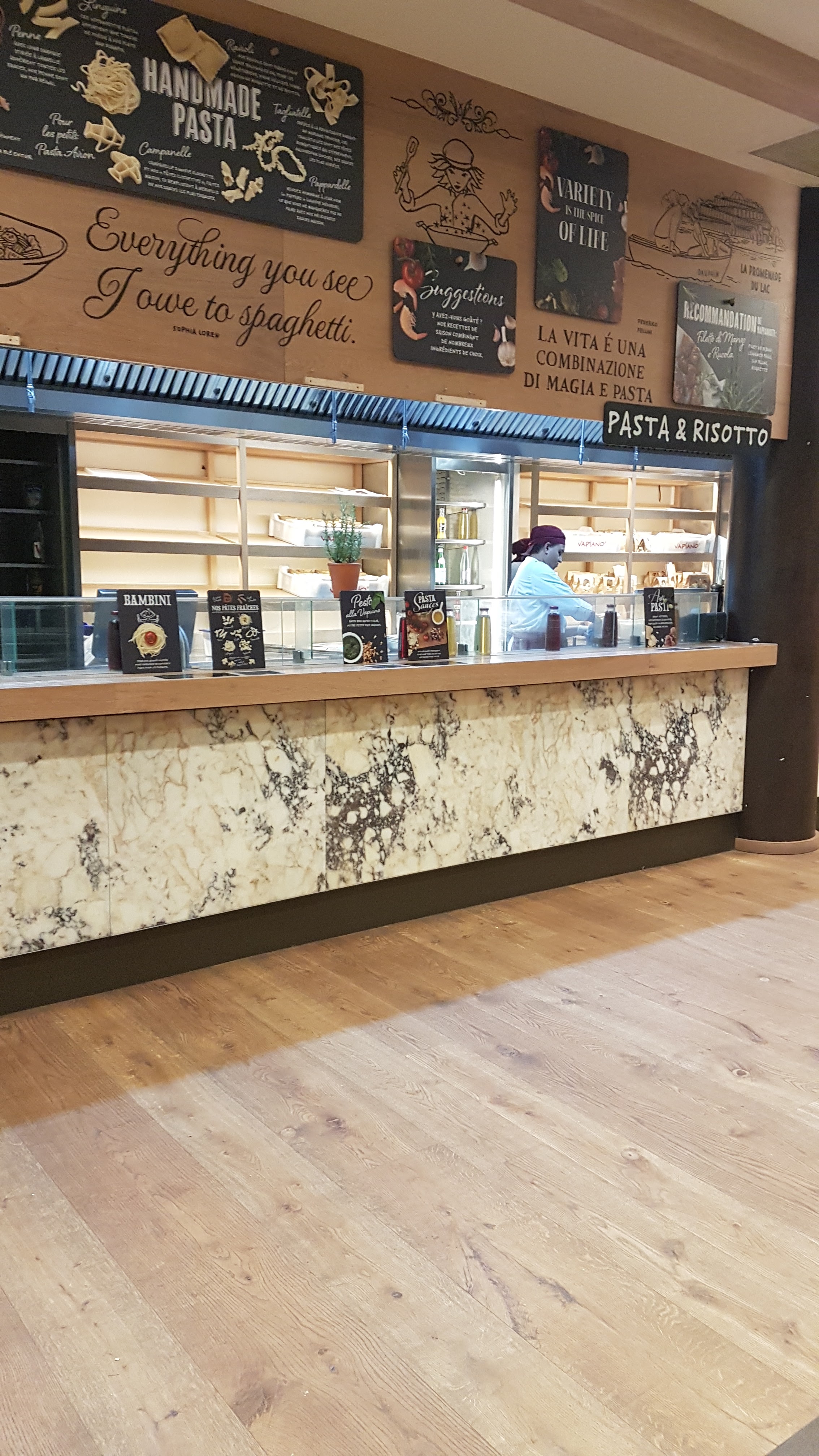Je vous souhaite un bonjour et aussi de me croire. Ne passez jamais la porte de Village Nature et encore moins de Vapiano. Ceg endroit est sale, les plats sont plus que médiocre..... ET PARTICULIÈREMENT CHERS ! Quand je parle de prix abusés, je ne plaisante pas. C'est une immonde garogotte, un fast food qui n'a d'italien que le nom. Passez votre chemin et ne venez pas vois ruiner à Village Nature. Un complexe immobilier bétonné pourri recouvert d'arbres malades. FUYEZ.