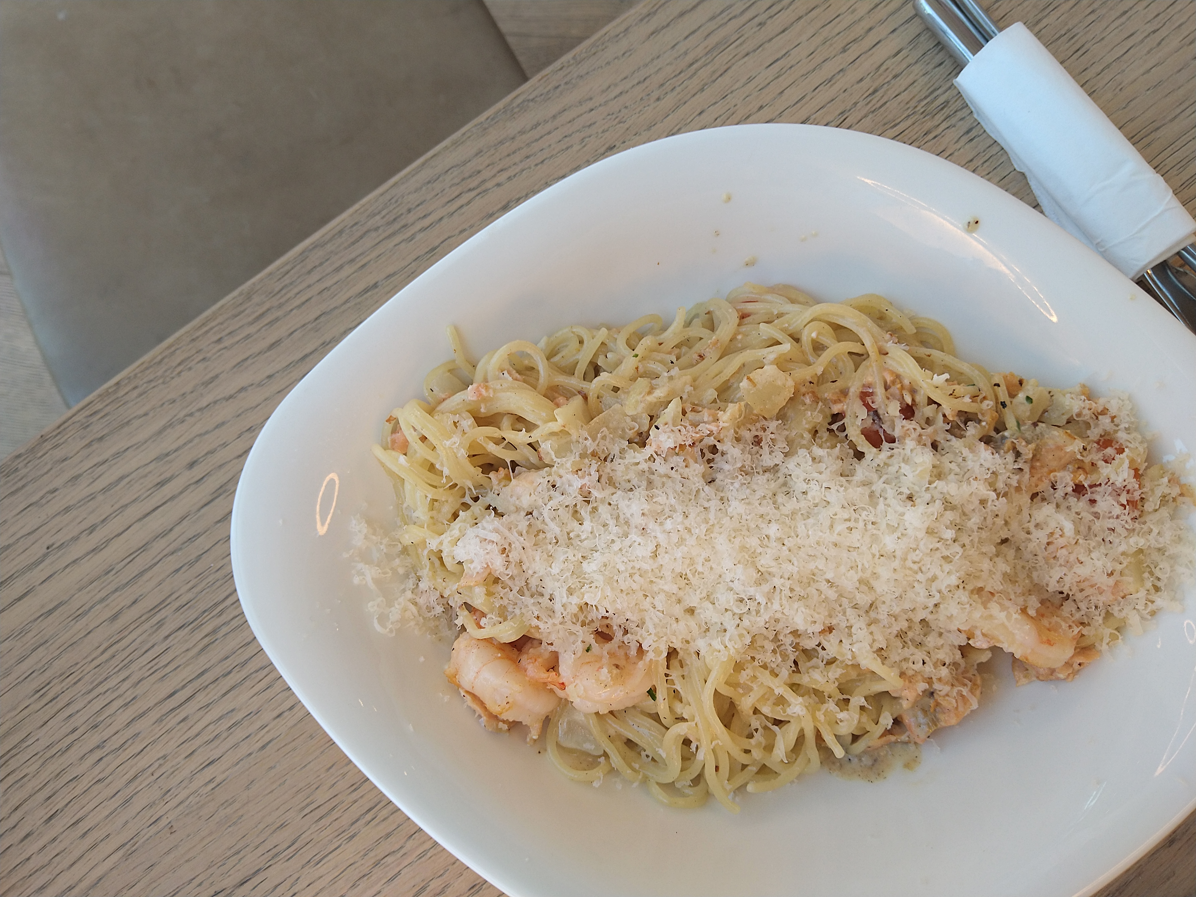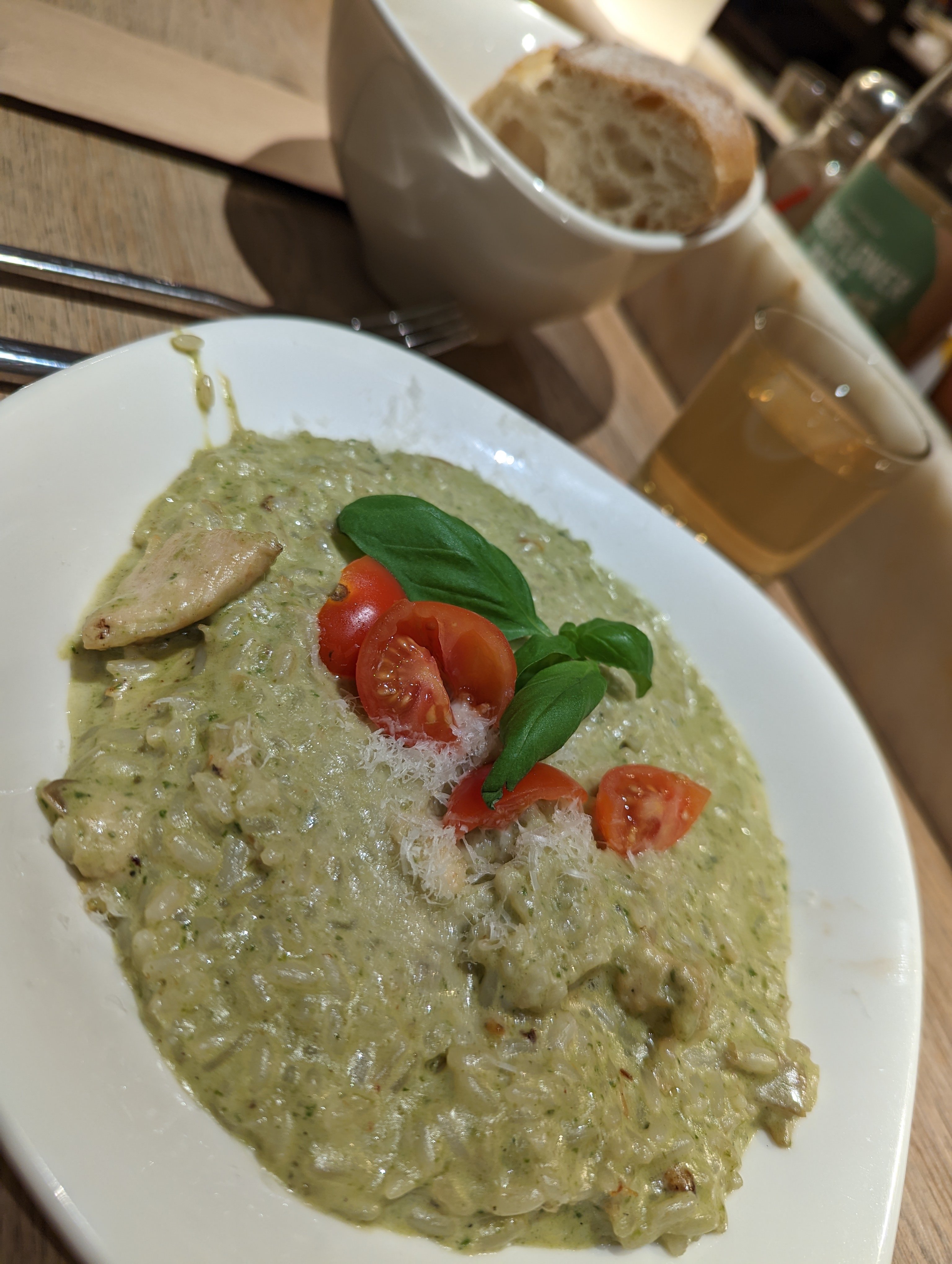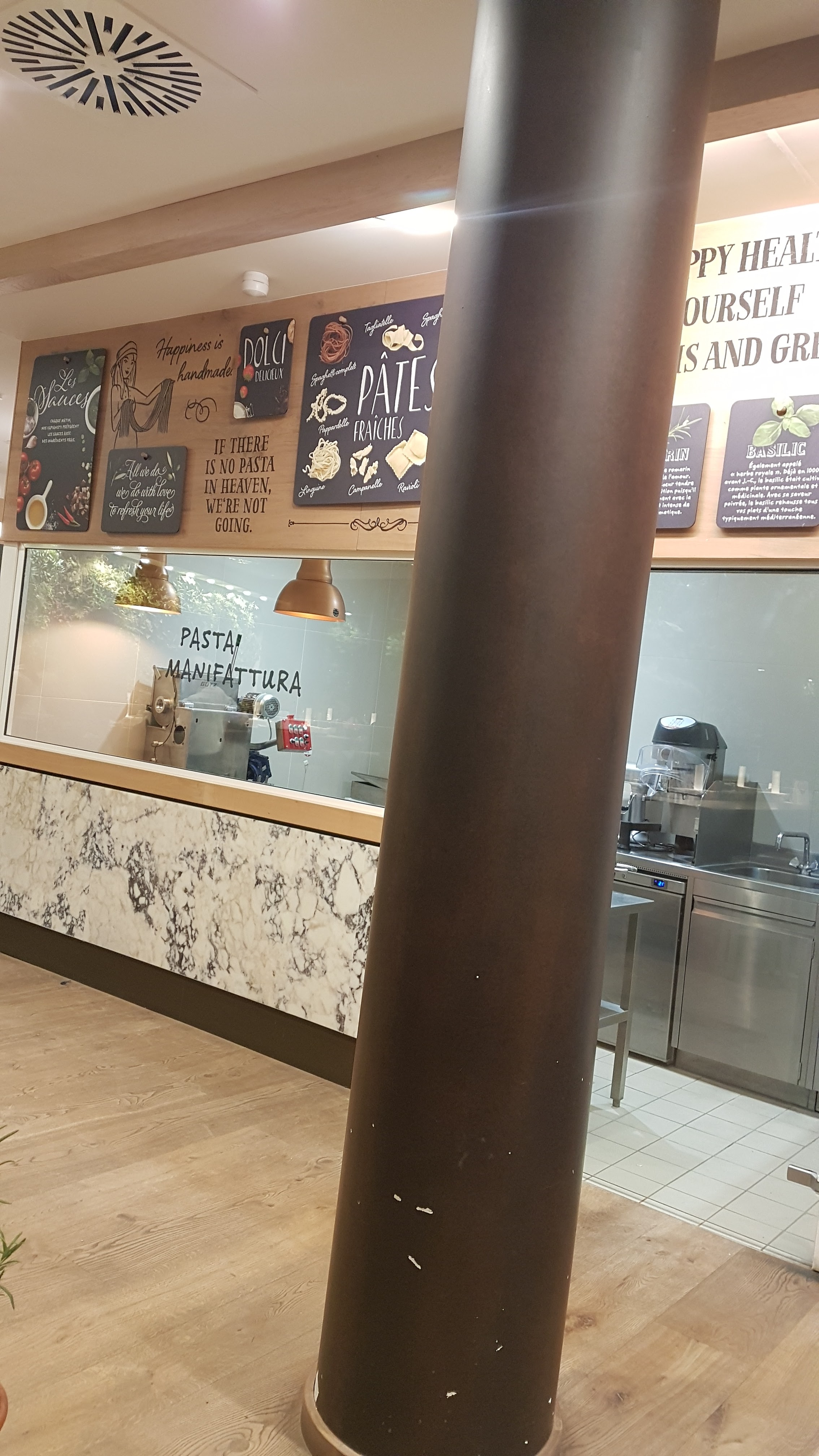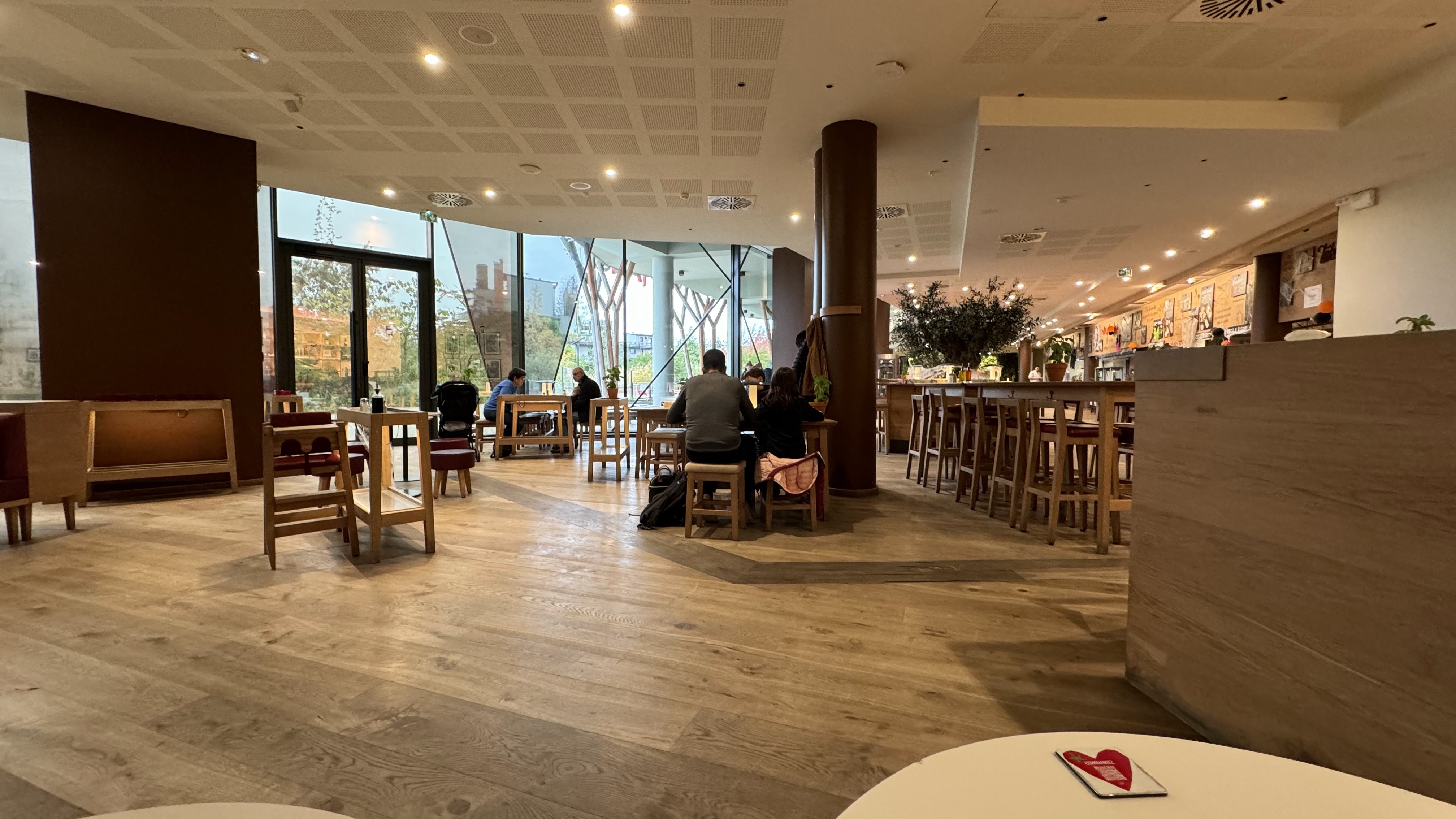 C'est super agréable !!! Le service est différent par rapport à d'autre vapiano sur Paris, car celui-ci il faut choisi son plat et boisson à la caisse et régler. Car le service ce fait à table il n'y a pas le système de carte d'enregistrement des plats commander.