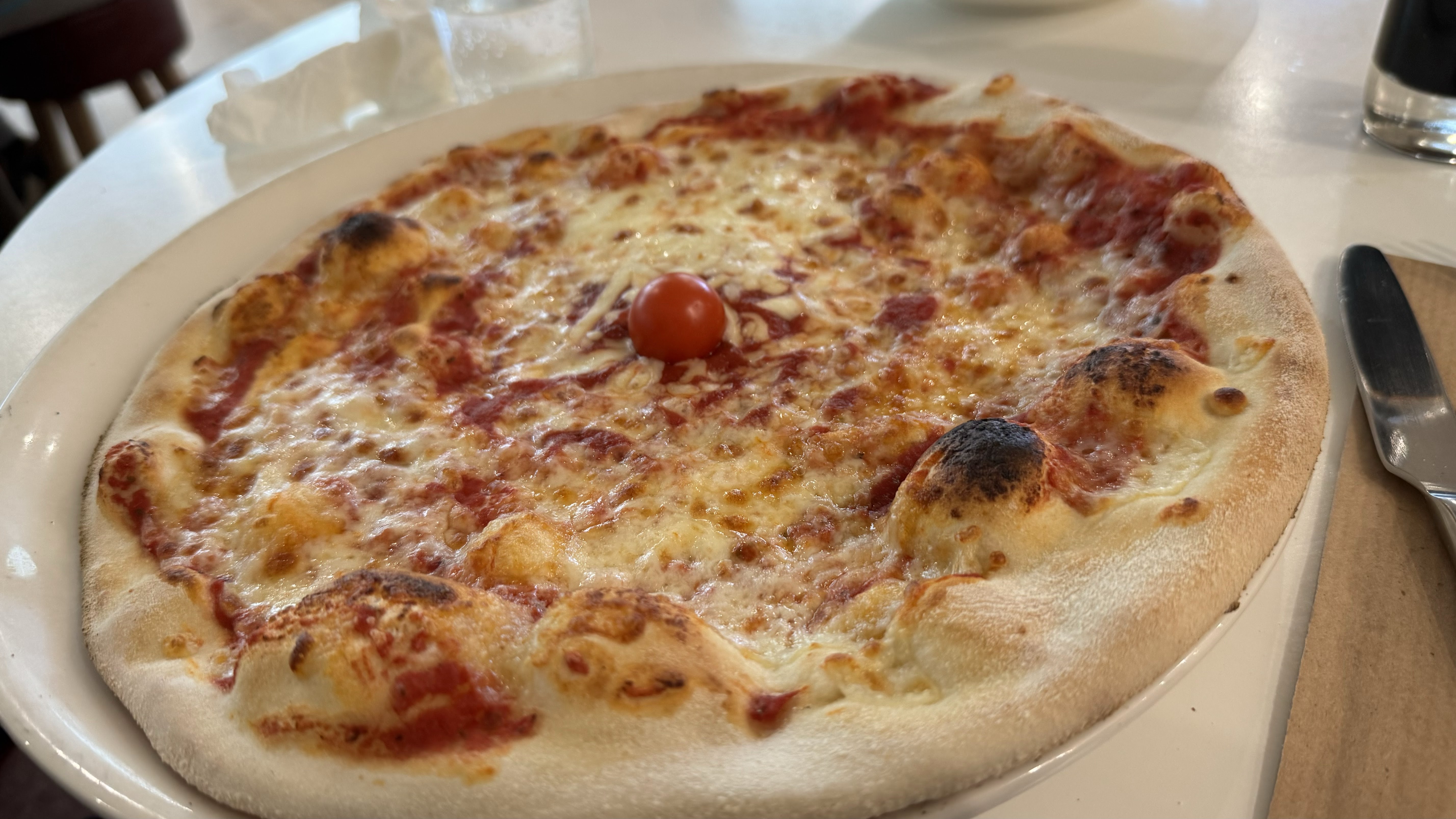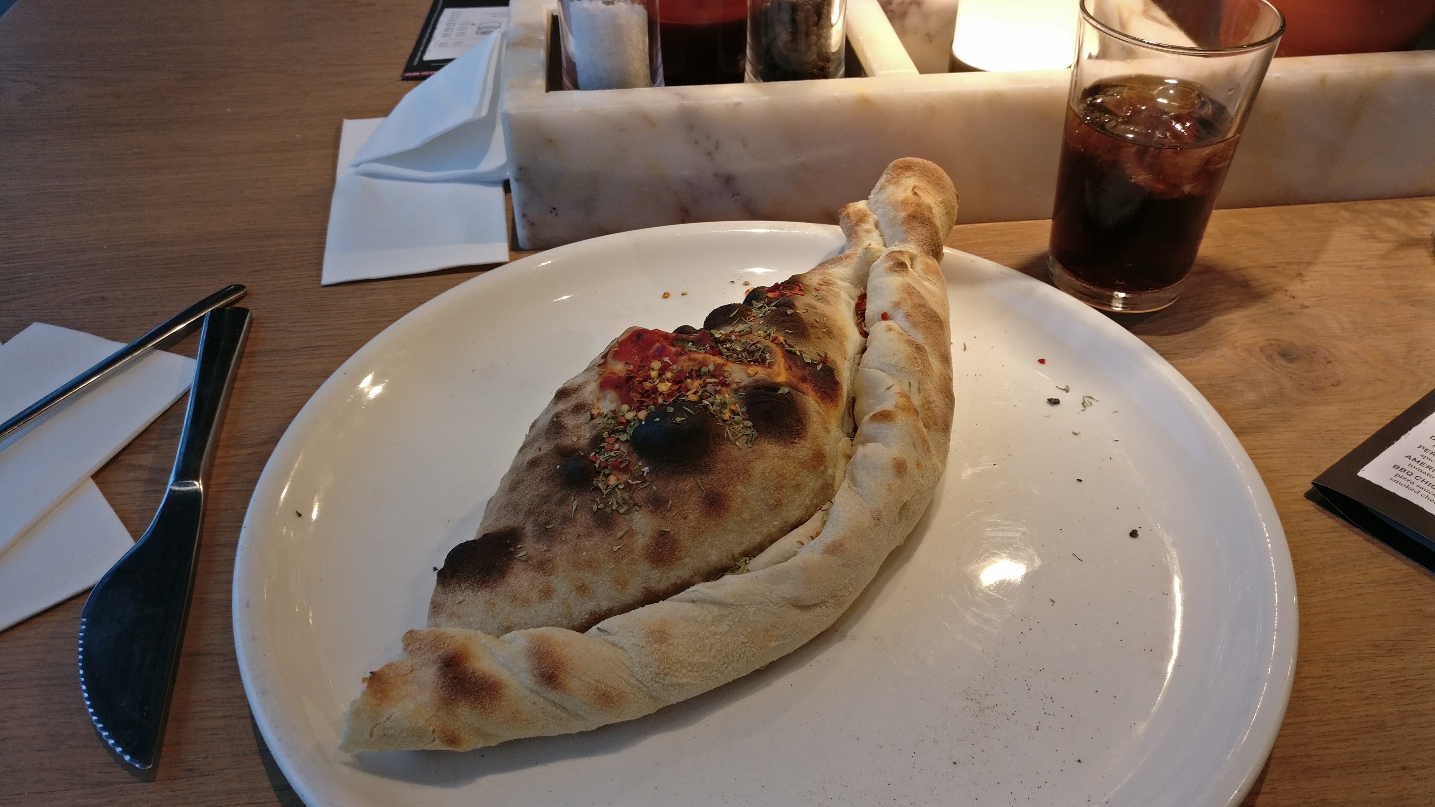 Des tabourets bof après une après midi ou bien une matinée on souhaite du confort pour notre dos. Les pizzas sont bonnes, Macaroni cheese pas mal. Et alors les desserts arrivés à 21h12, commandé et à la fin mon cheesecake a fini en part de gâteau car il y en avait plus, plis de Crema di Mela ni de Crema di Fragola.... enfin bref pas top. Et alors le système de on s'assoit alors que 4 tables étaient encore pas desservi eh bien on l'a fait nous même.... à pars ça équipe au taquet.