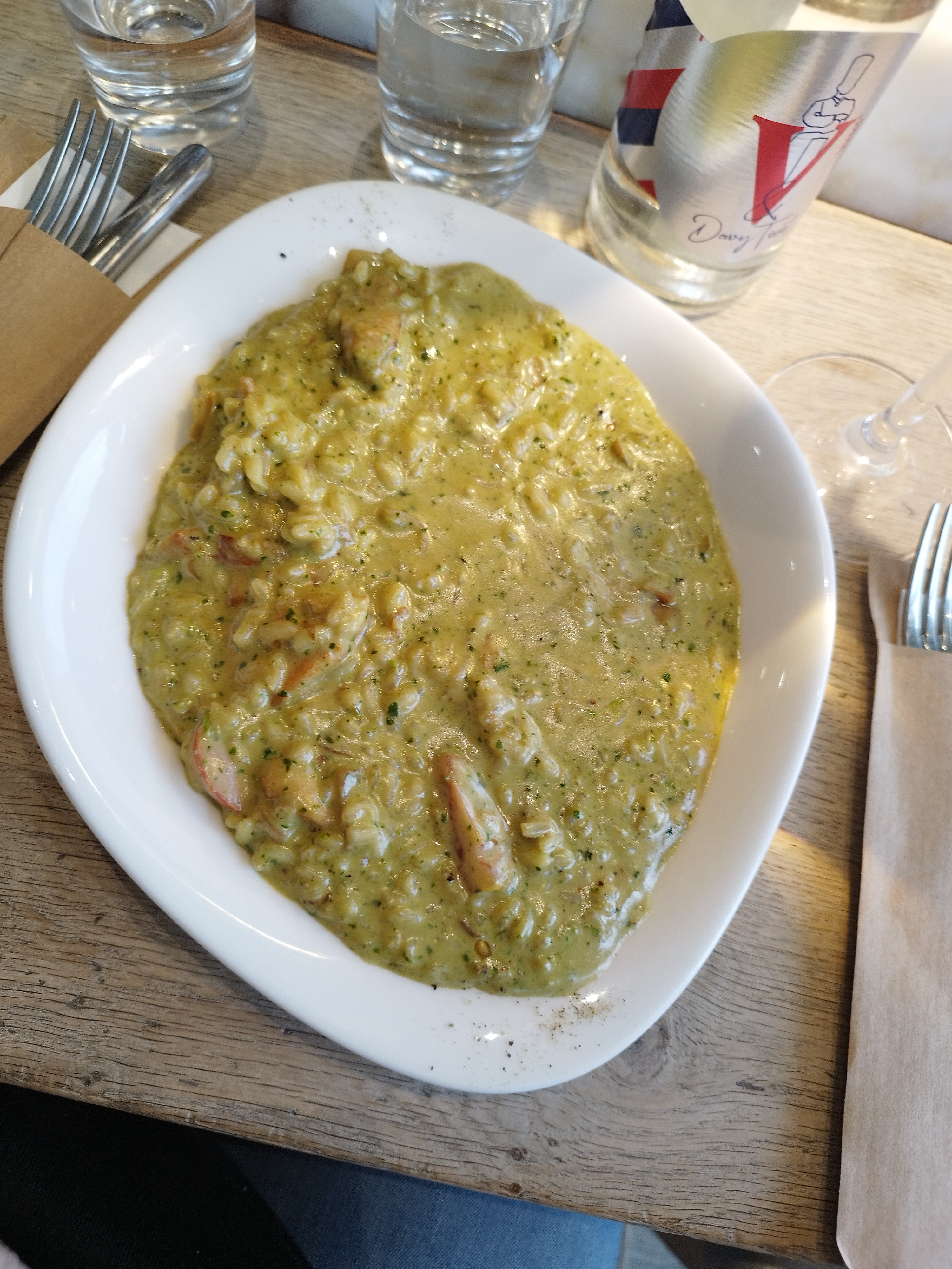 Très déçue de notre expérience dans ce restaurant. Servi déplorable voir inexistant... Plat de linguinis pas top collantes.... Apero à partager arrivés en même temps que les plats... Nous n'avons pas pris de desserts vu le contexte Nous ne le conseillons pas ! Chères pour la prestation !