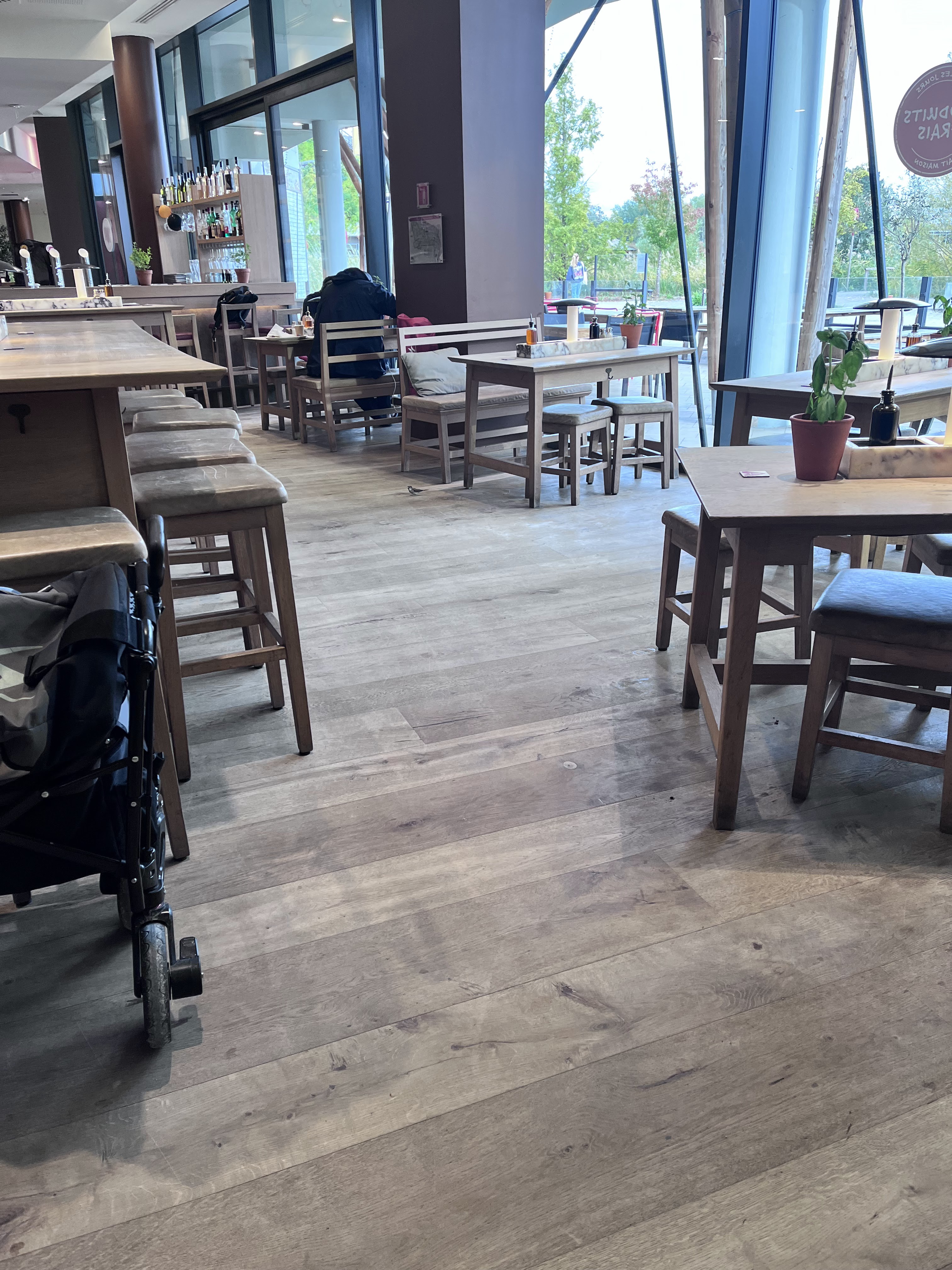 Concept self … loin de ce sentir d’un restaurant. On doit ce lever pour aller chercher la moindre chose pain, serviette etc… enceinte de 7 mois on me propose une table bar… ensuite des tabouret sans dossier, sympa … 👍🏽 au bout de la 3 eme j’ai réussi à être installée en banquette 😀