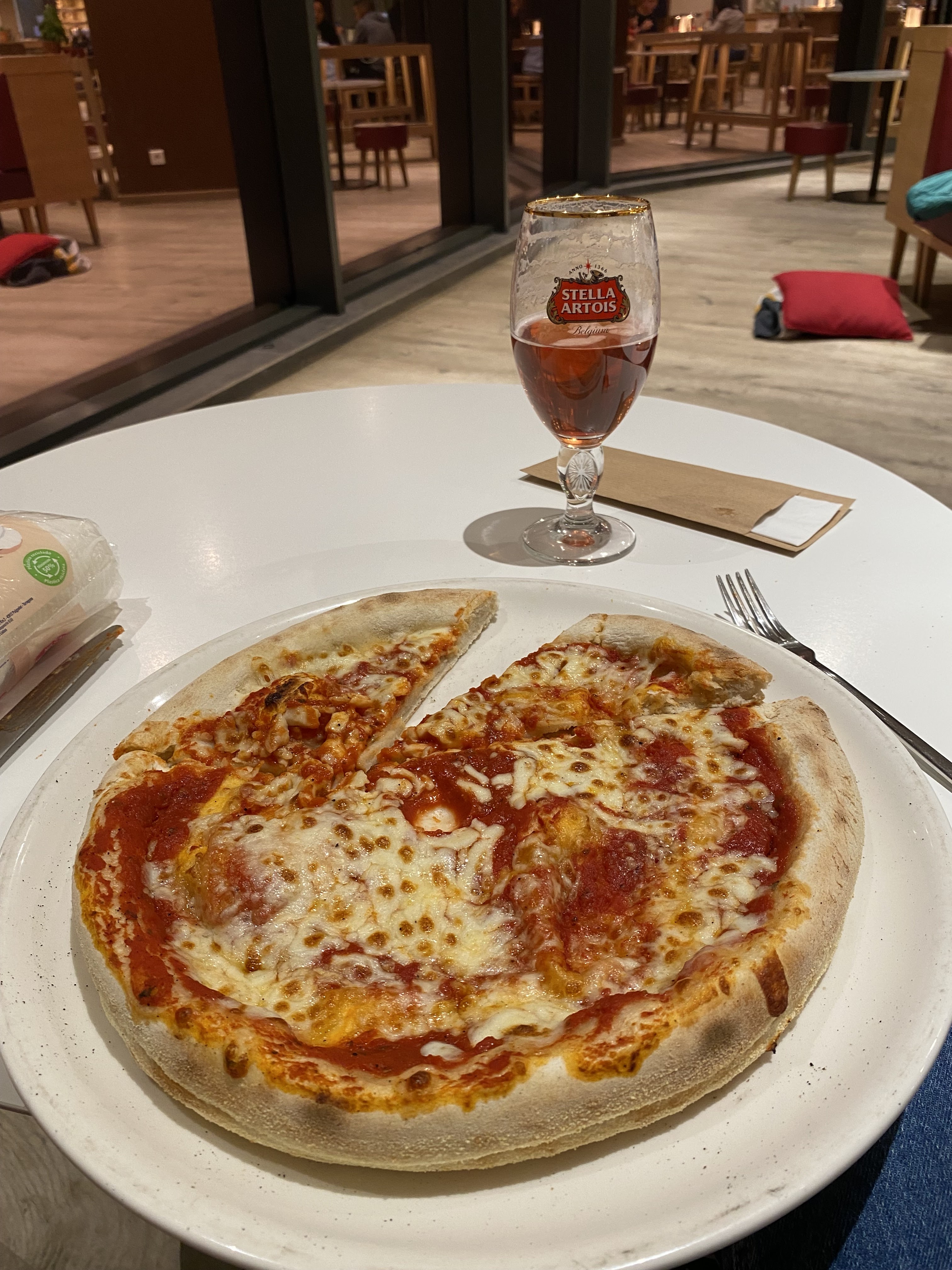 Une réelle déception. Ayant eu une bonne expérience dans l'un des autres établissements de la chaîne, c'est avec beaucoup d'enthousiasme que j'ai proposé à mon conjoint de venir découvrir celui du village nature. Grosse erreur... Cela a commencé par une grosse attente dans le froid, puisqu'il fallait attendre d'être placé. Premier problème, le chef de salle ou la personne en charge de cette tâche ne semblait pas réellement concernée par la file grandissante malgré une salle aux deux tiers vide. Les tables davantages destinées à prendre un verre qu'un repas. Hauteur inadéquate pour manger sans se casser le dos. En partant du principe que vous ayez la chance d'être sur la banquette, si vous êtes sur le petit tabouret ce sera encore plus compliqué. Estimez-vous heureux si celui-ci n'est pas bancal (photo1). Tout se passe sur QR code, dommage pour les gens qui n'ont pas de smartphone. Vous devez passer votre commande puis la régler pour que celle-ci soit envoyée en cuisine. Nous décidons de prendre un cocktail en apéritif ainsi qu'un antipasti à partager. Suivi de deux pizzas. Nous avons eu le plaisir de voir l'ensemble de la commande arriver en même temps. Nous avions donc le choix de laisser tomber l'apéritif pour manger deux pizzas chaudes ou celui de profiter de notre apéritif et de passer à côté de nos plats. Le respect du timing est pourtant une composante de base des métiers de la restauration. Concernant la qualité des plats, garniture particulièrement légère sur les pizzas à pâte fine et pâte pas assez cuite sur les pâtes épaisses. Très mauvais rapport qualité-prix. Il a été nécessaire de réclamer de l'eau, ainsi que deux verres. La carafe avait le bon goût de l'eau du robinet et une température plus chaude que celle de la salle qui, elle était particulièrement froide. Niveau service : sympathie et dynamisme très différents selon les serveurs / serveuses. Il serait urgent de revoir le concept dans son ensemble, et de s'assurer d'entretenir un minimum l'établissement. Pour résumer une vraie grosse déception qui nous a convaincue de ne pas revenir dans cette enseigne !
