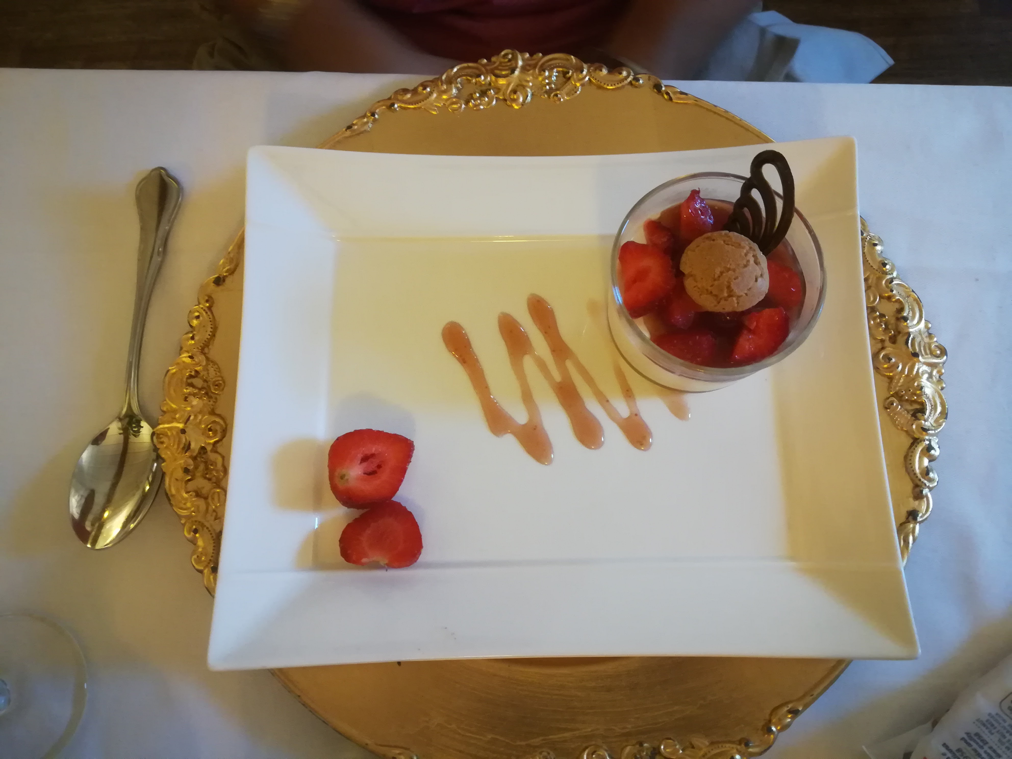 Dans un cadre organisé, il y règne un luxe de services et de convivialités inattendue ou Georgio, cuisinier, maitre d'hôtel et Animateur se transforme en maitre danseur-musicien dans l'Auberge italienne subitement transformée en Lieu de joies. Entrainant toutes les dames dans une farandole il délivre fleurs et objets de déclarations d'Amour à L'italienne aux hommes désarmés dès cet instant Il ne manque plus que Frederic Francois ☺ pour finir de charmer les dames qu'il fait virevolter. Outre cet aspect Festif, on y déguste des plats sortis comme par magie des livres de recettes des Mamas Napolitaines entre autres. Quand aux recettes Georgio présente avec un accent qui n'a rien de Vosgien 😅 des méthodes, us et courûmes qui font saliver plusieurs fois tant il a d'expériences de Chef de Grandes Cuisines de quoi faire pâlir de jalousie les Chefs étoilés. Que rajouter sinon qu'une fois l'addition -raisonnable- payée on a déjà hâte d'y revenir 😉. Merci Monsieur Georgio tout était bon !