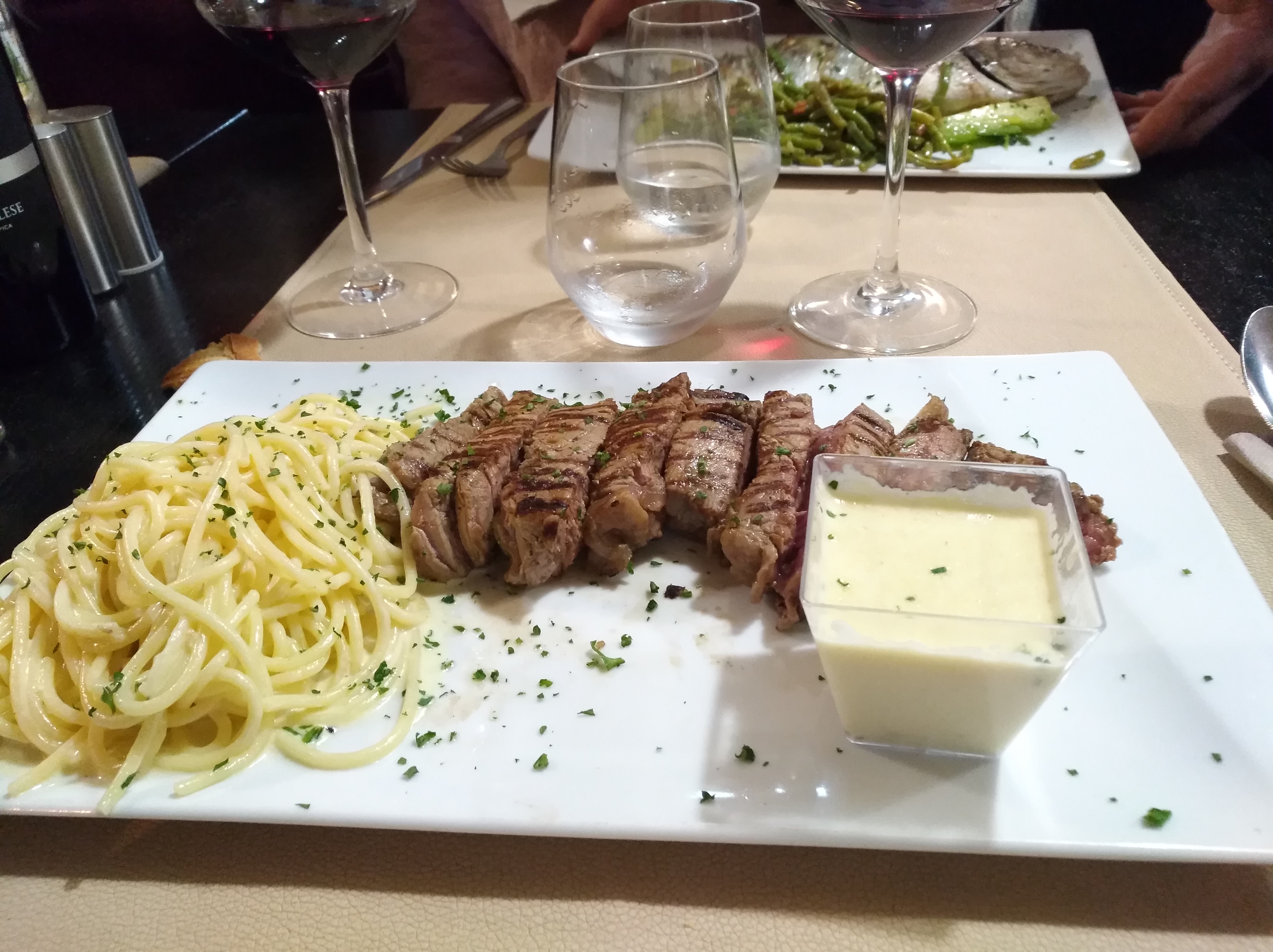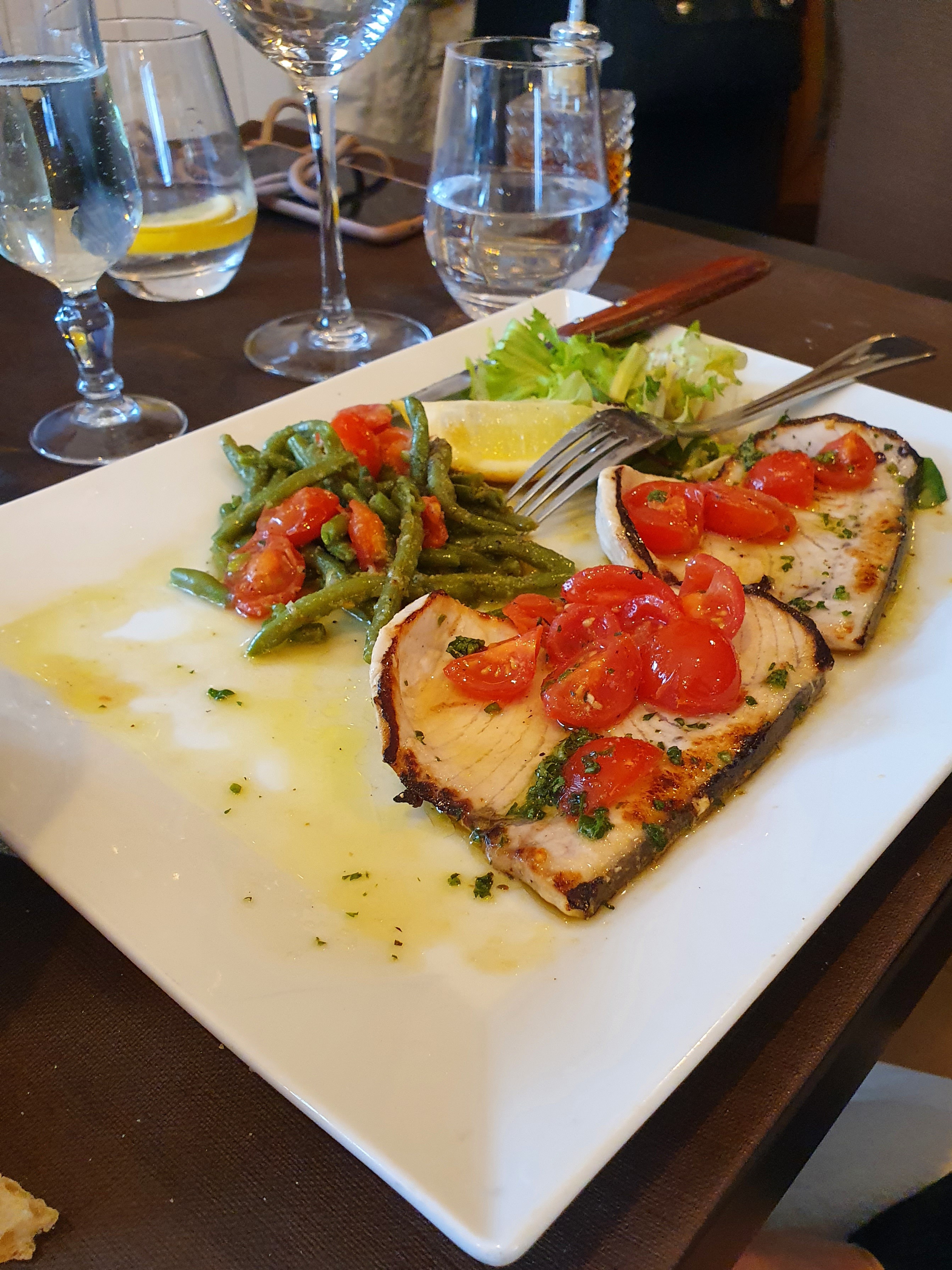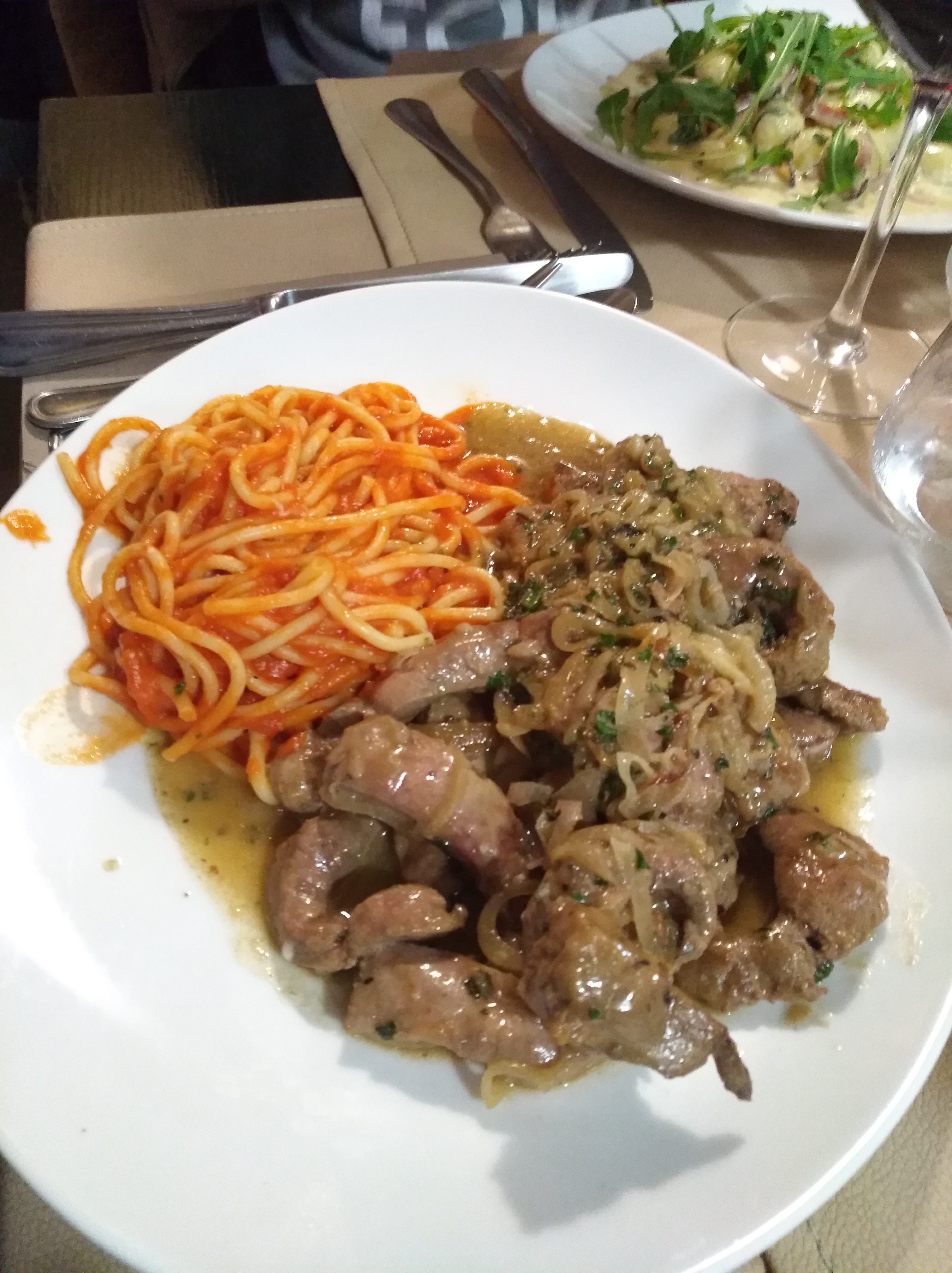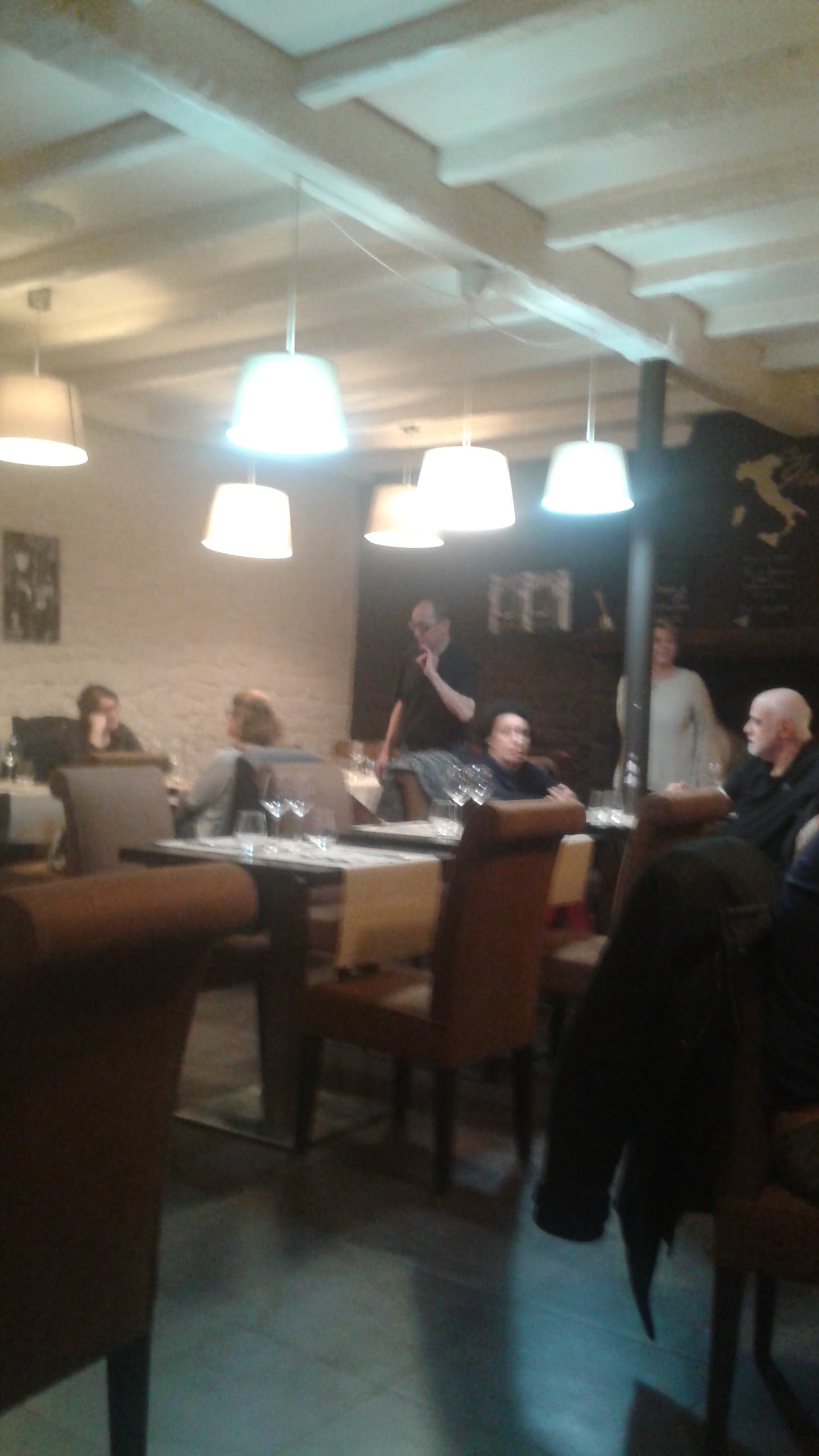 Ciao, come stai, grazie mille. Tout va vite. Ça doit tourner. Vendre vite. On nous a annoncé des cèpes du jour. Alléchant. On a eu de l’eau, des pâtes trop cuites, une entrecôte sans saveur. 40 euros par personne dans le bruit ambiant pour 35 mn d’un non plaisir.