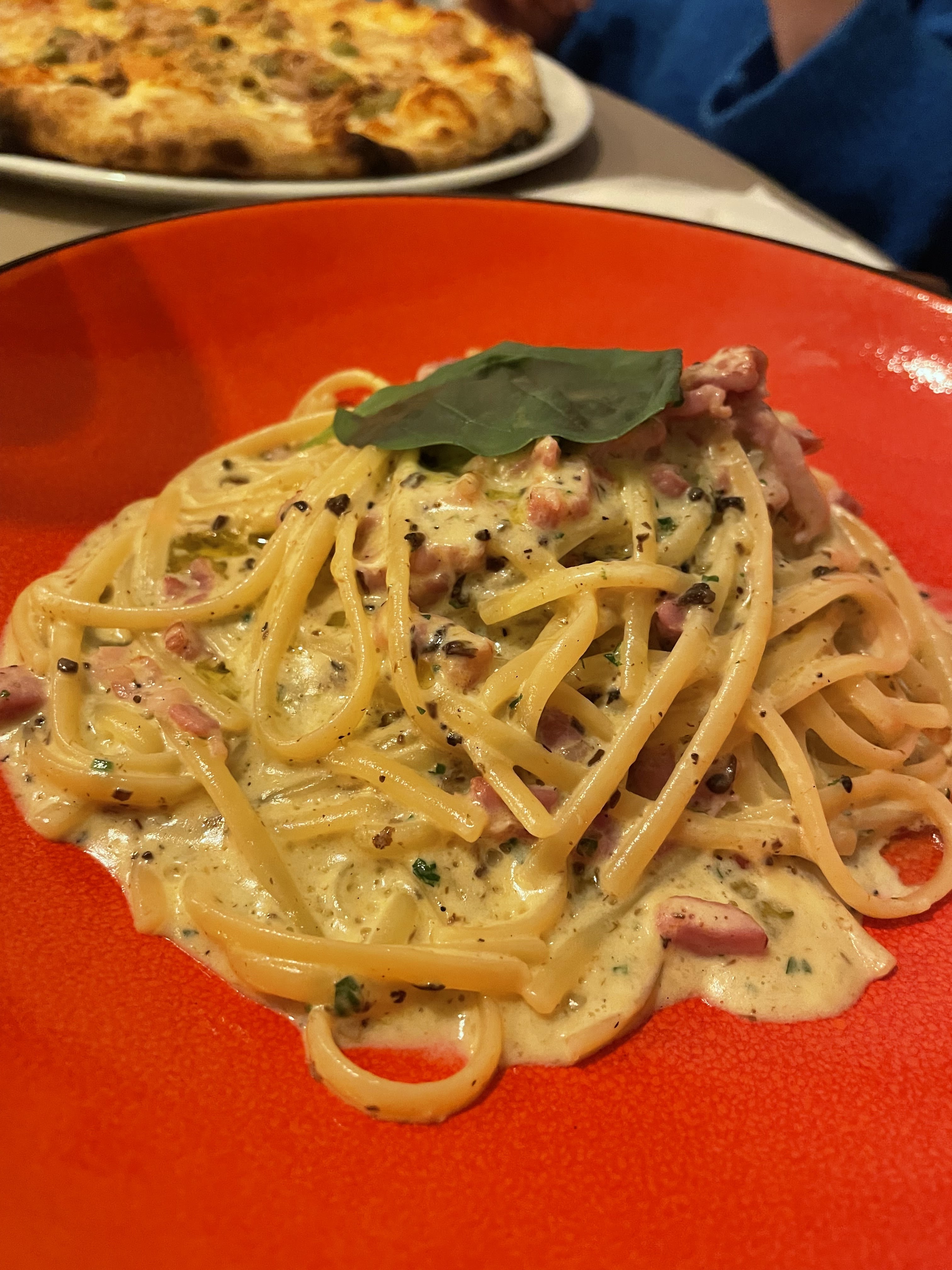 La nourriture était très bonne, et vraiment italienne. Malheureusement, nous n'avons pas autant profité de notre expérience gustative parce que ils nous ont refusé de mettre une table à l'intérieur, loin de là porte d'entrée. Pourtant, quand nous sommes arrivés à 19h20 avec une reservation il y avait plain de tables libres. Ils nous ont dit qu'il y avait des réservations pour des groupes plus grandes mais en fin de compte il n'y avait que une groupe et plain de gens après nous qui ils on mit en petit table de deux (j'ai compté 8). J'imagine que c'est une politique de garder les tables au cas où il y a des groupes plus grandes, mais ce n'étaient clairement pas 4 annulations (de groupes de 4 et 6) un mercredi soir pendant les vacances. C'est vraiment dommage parce que je ne me vois pas retourner malgré le fait qu'ils cuisine bien.