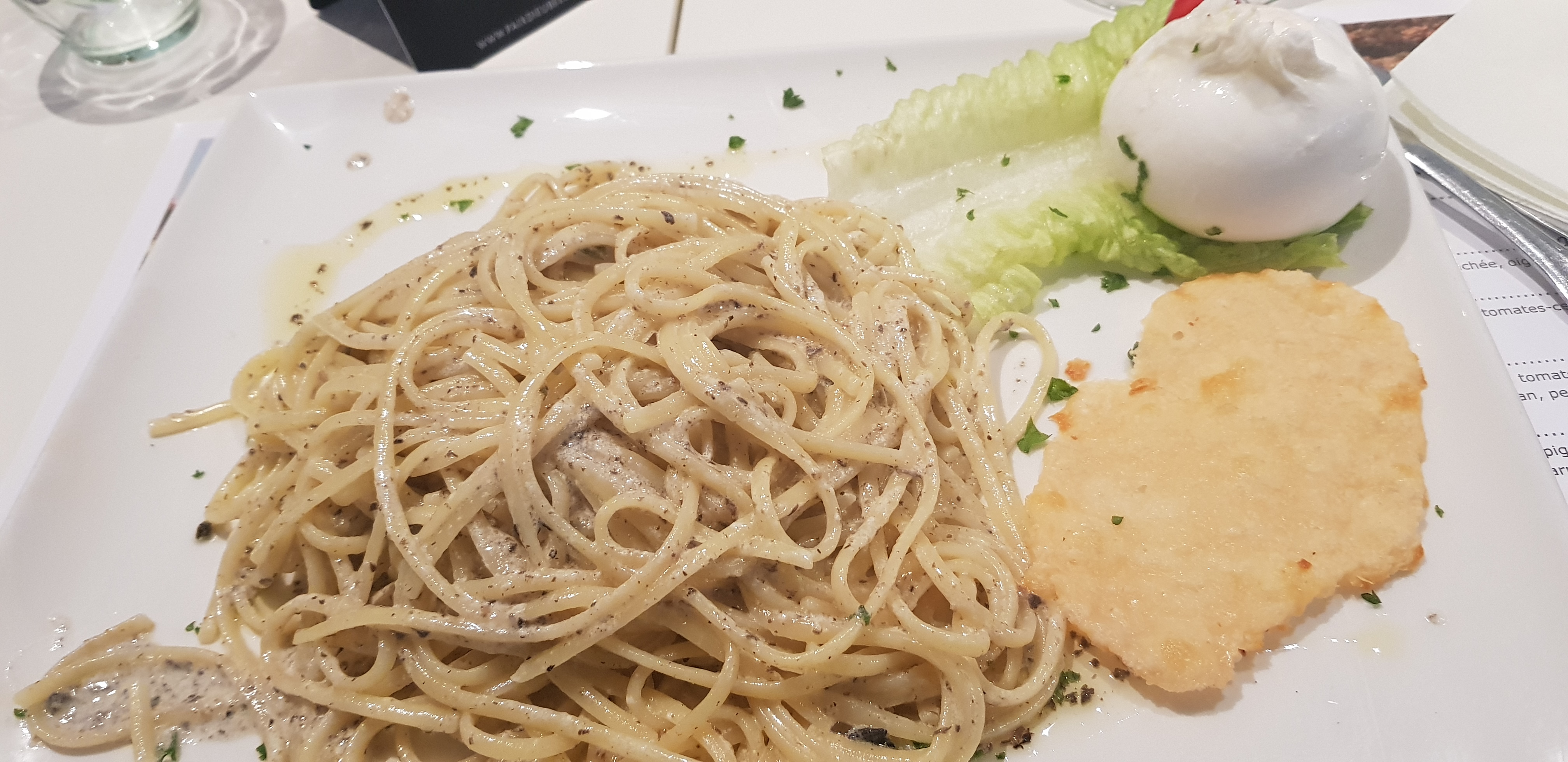 C'était un régal ! J'ai mangé toutes mes pâtes alors que je ne suis pas fan de ce féculent. J'ai aussi aimé le service qui était rapide et fluide. Les serveurs sont tous très bons. -0,5 parce que j'ai pas vu un joueur de foot alors que ça s'appelle le mercato. En somme : Bonne bouffe/20.