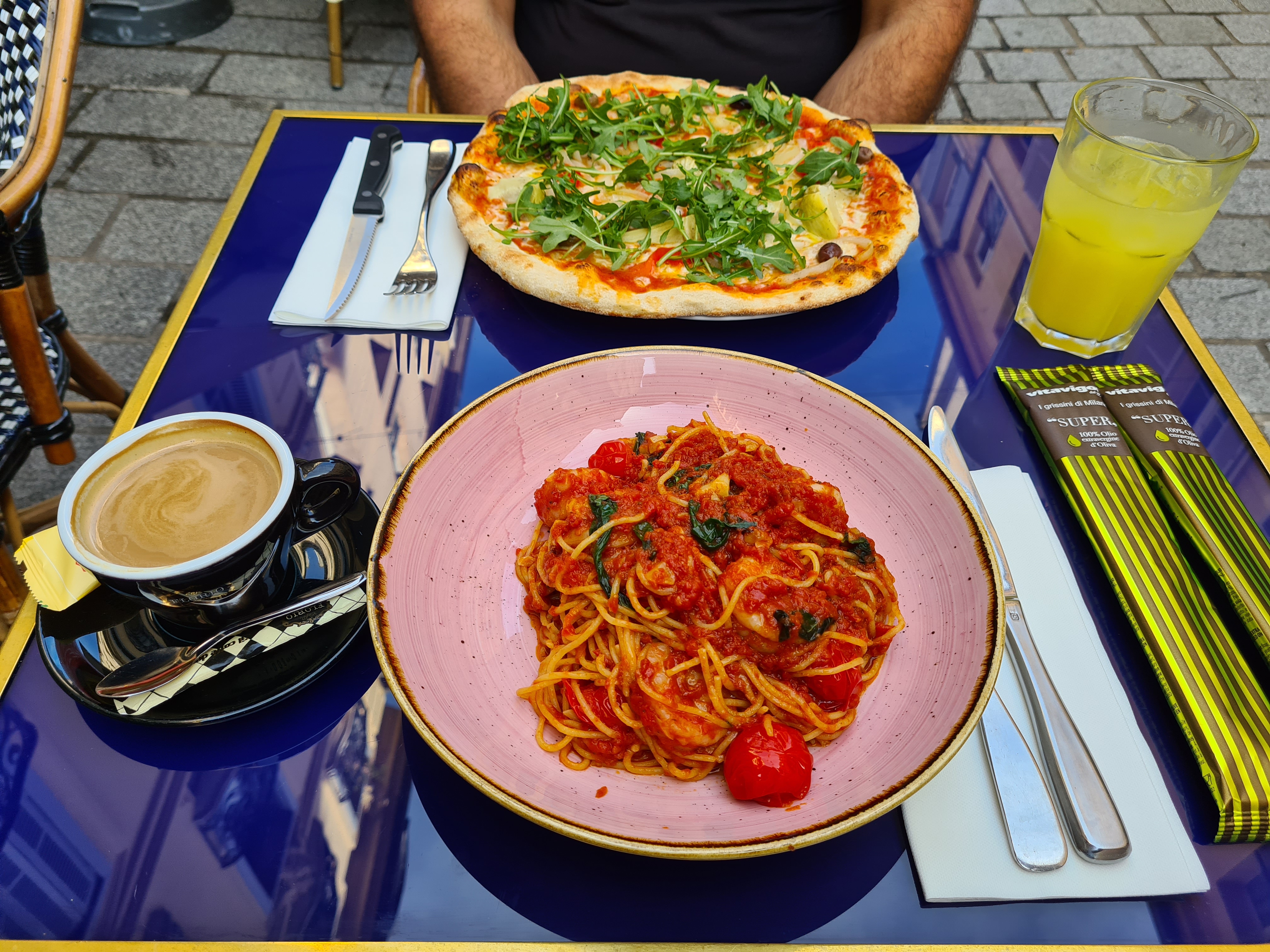 Par hasard en famille. Notre « erreur » a sans doute été de ne demander à boire qu’une carafe d’eau et une bouteille d’eau pétillante. La carafe a failli ne jamais arriver. Les serviettes aussi ont dû être réclamées plusieurs fois. Les pâtes carbonata goûtaient la farine, les pizzas n’étaient pas terribles (et chères). Produits de qualité, sans doute, mais les assaisonnements et la cuisson n’étaient pas au rendez-vous. Le tagliata de bœuf était par contre délicieux et justifie l’étoile. Quant à l’accueil chaleureux dont parlent beaucoup d’avis, il est sans doute réservé aux clients prenant des apéritifs et du vin. Au début, le serveur était juste poli (mais hautain), et nous« oubliait » ensuite. Ce qui est par contre vraiment inadmissible, c’est qu’il s’est ensuite énervé suite aux remarques.