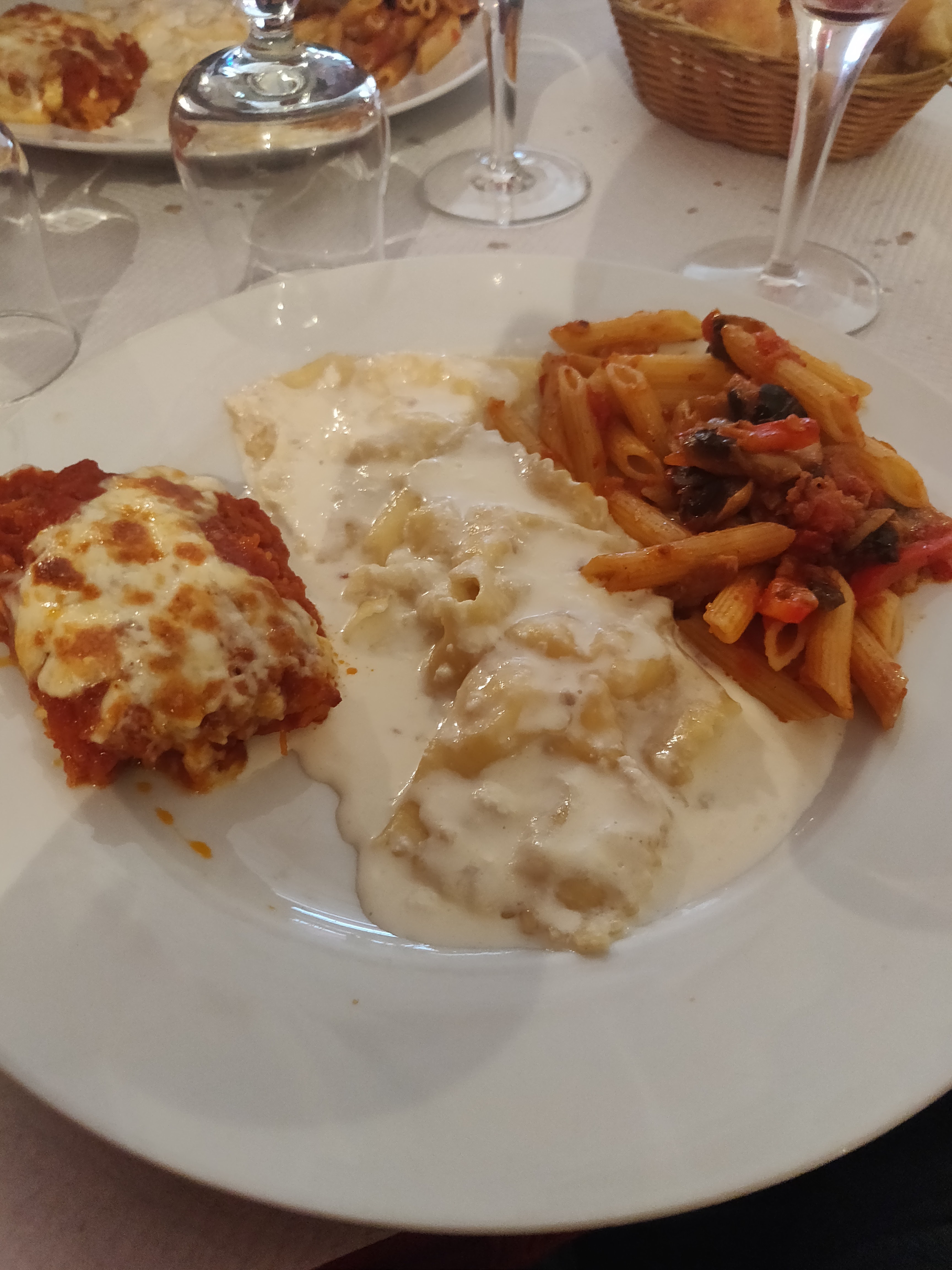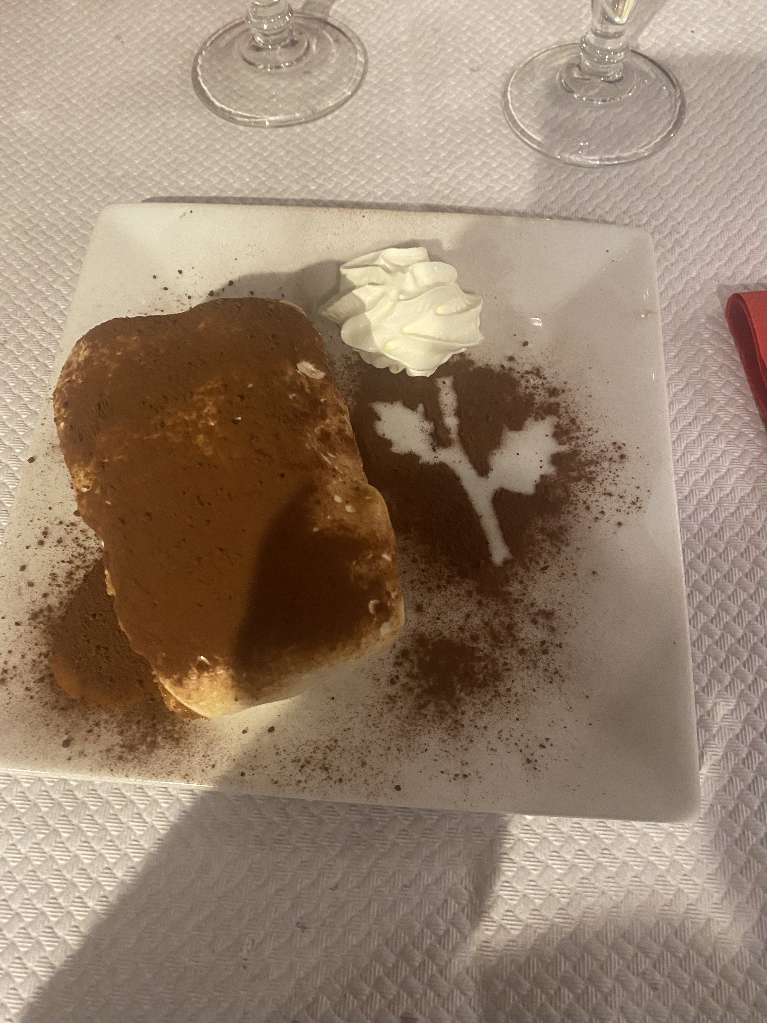 Alors, après avoir consulté quelques avis, je me dis aller on test, resto Italien heeeee... Seul client...... En attendant ma commande, le patron amène des antipasti à base de chorizo et de cube d'emmental. Ma commande arrive, escalope a la crème, pâtes trop peu et salade assaisonnée (trop de salade et trop assaisonnée), donc pas top. Dessert tiramisu, alors là j'ai été surpris, belle présentation façon glace, juste les biscuits pas assez imbibés de café. Bon le patron a offert le limoncino. Quand je lis les avis, dur de croire au 5 étoiles.