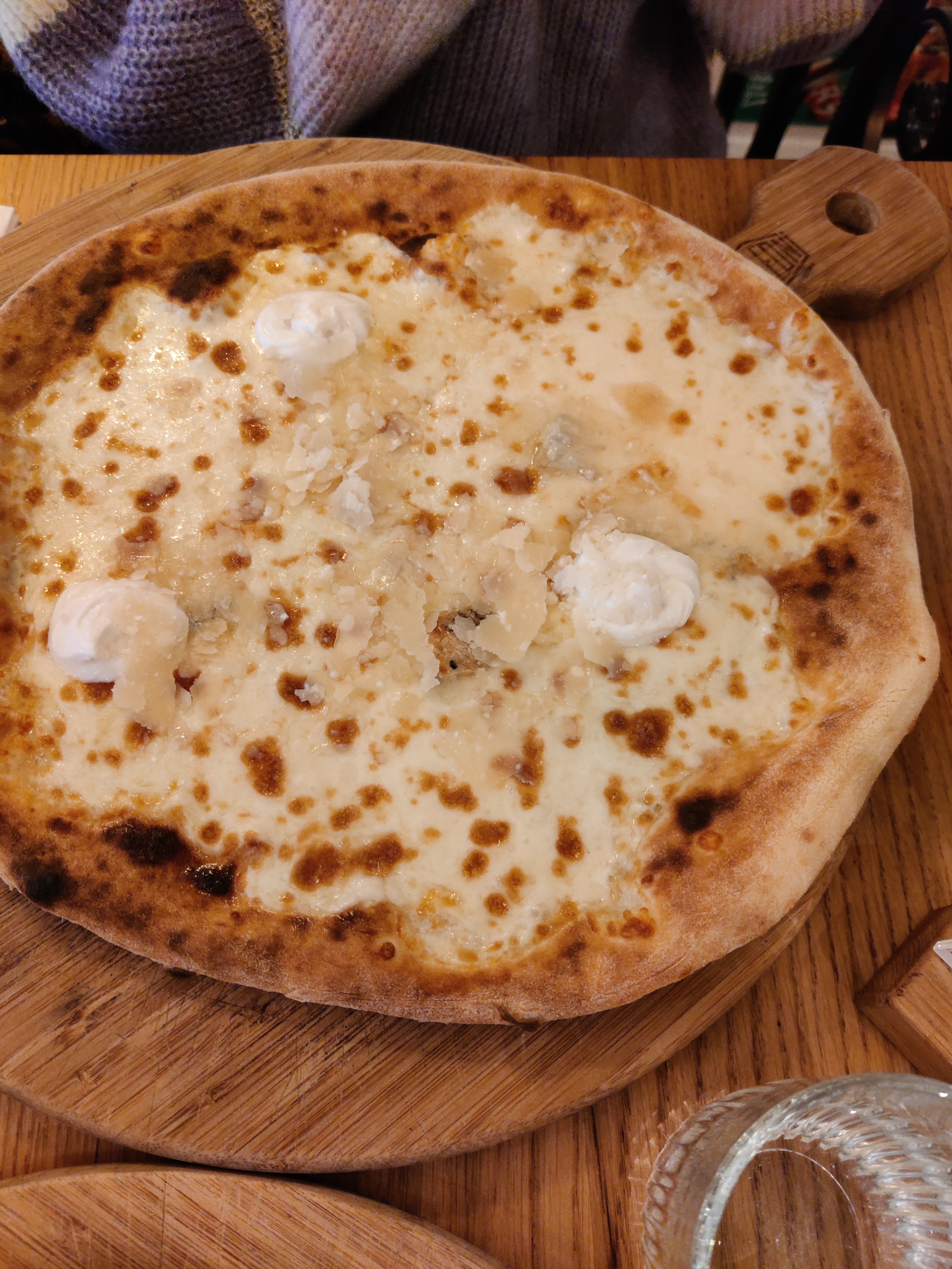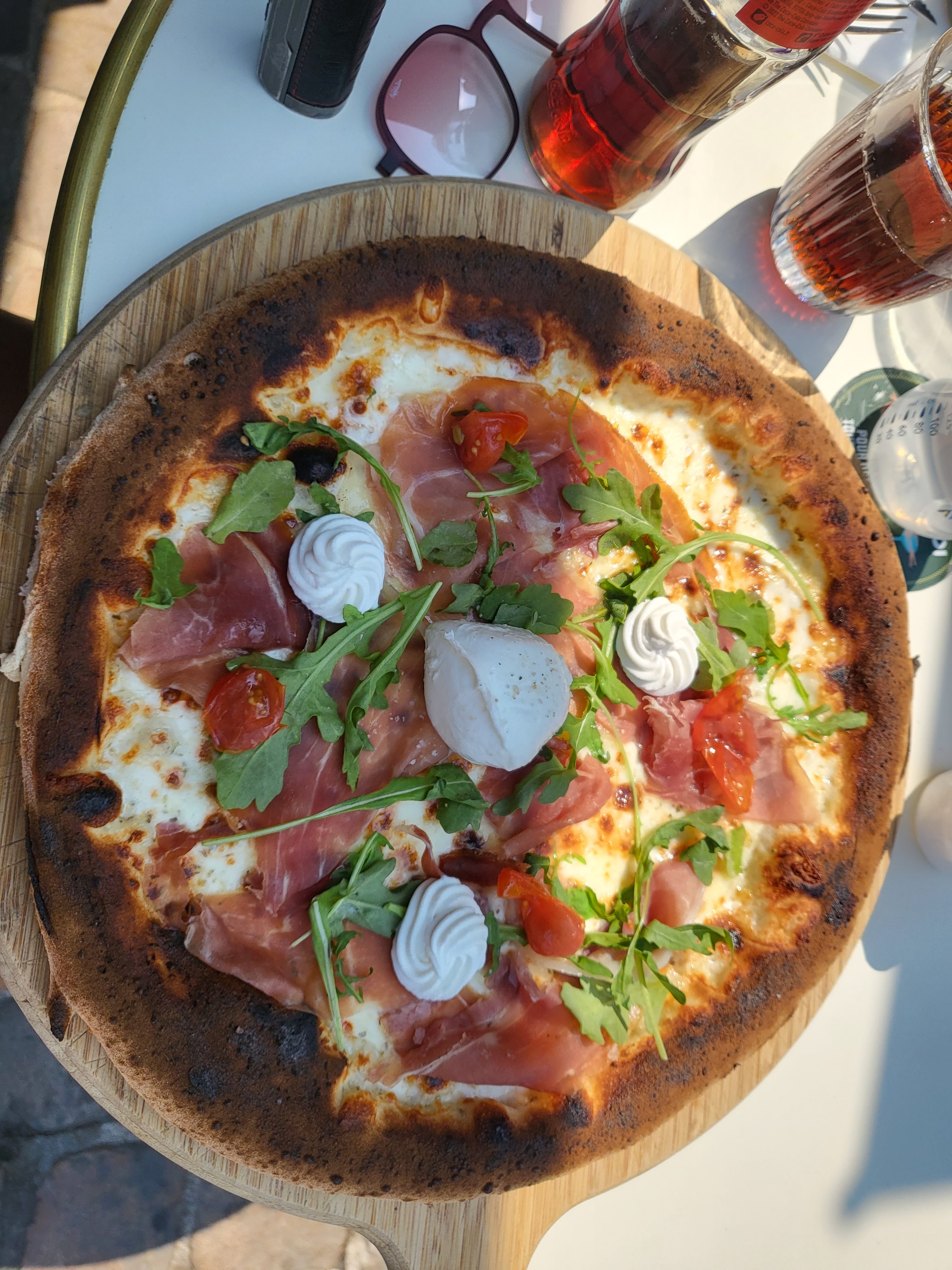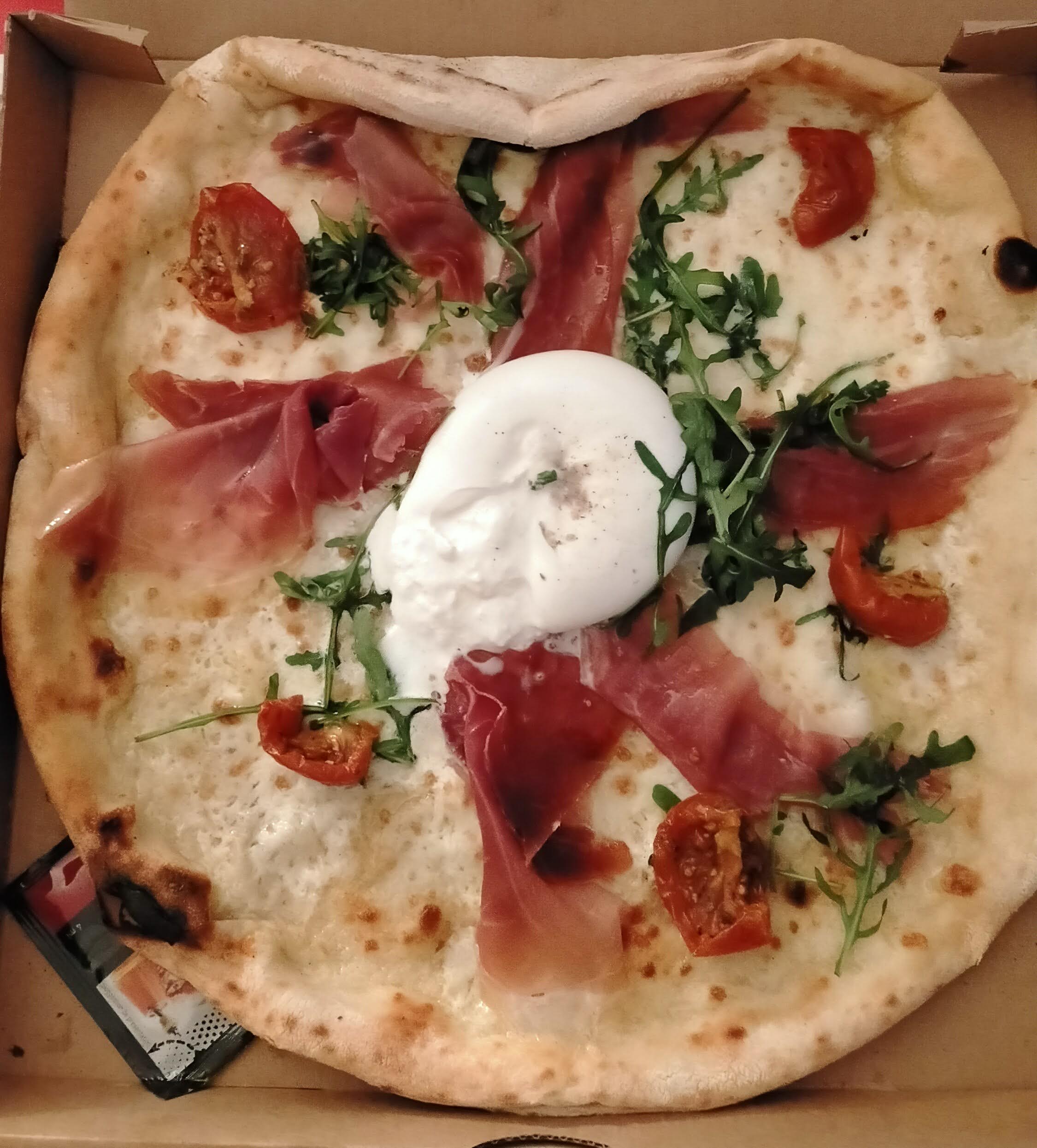 Commande de 4 pizza Les pizza sont trop cuite, très compliqué à découper Pizza très peu garni pour le prix Pizza burratina commander mais la birratina est chauffer ( je n’ai jamais vu une burratina chauffer) Accueille désagréable Je ne recommande pas ce lieu