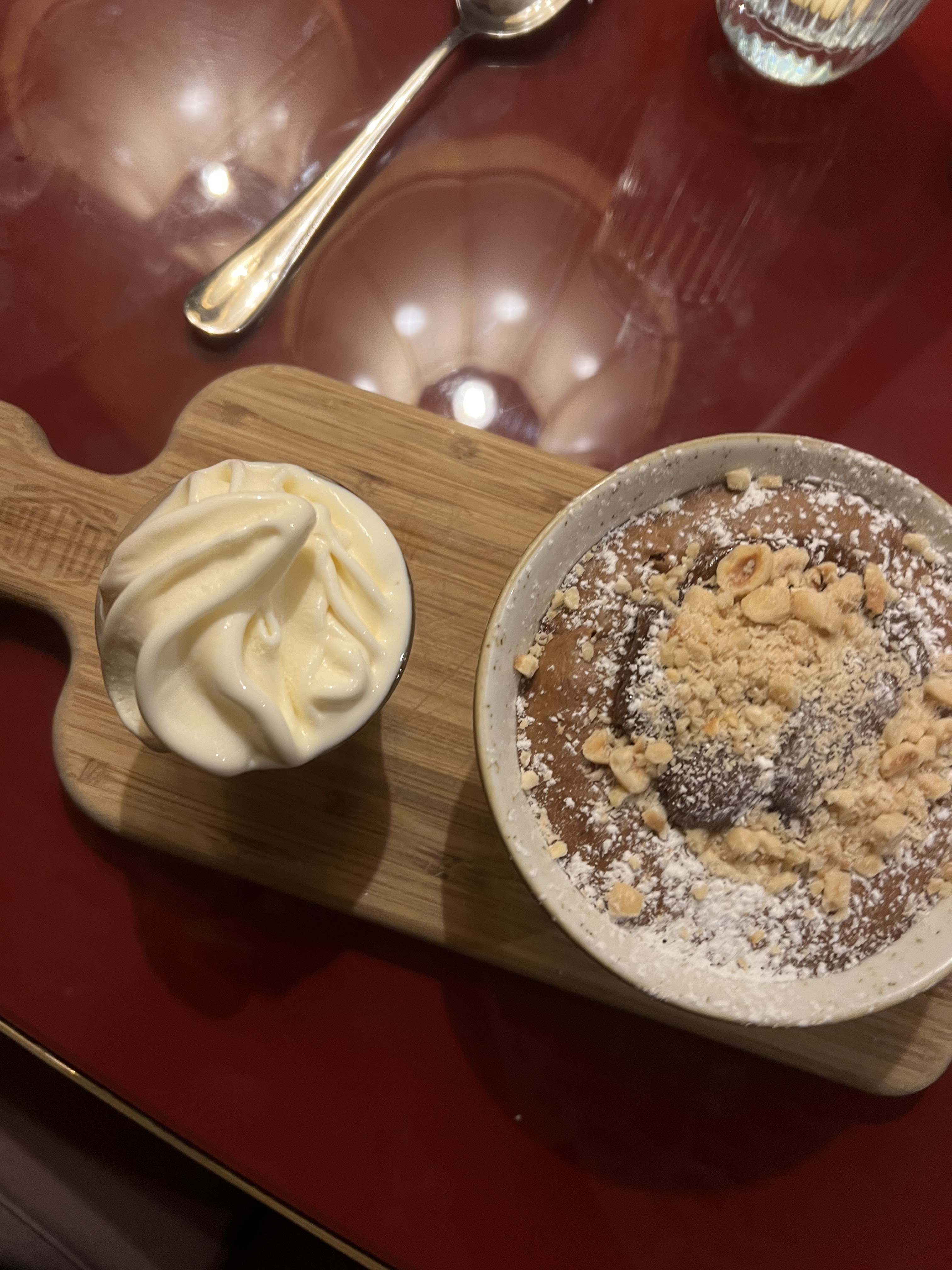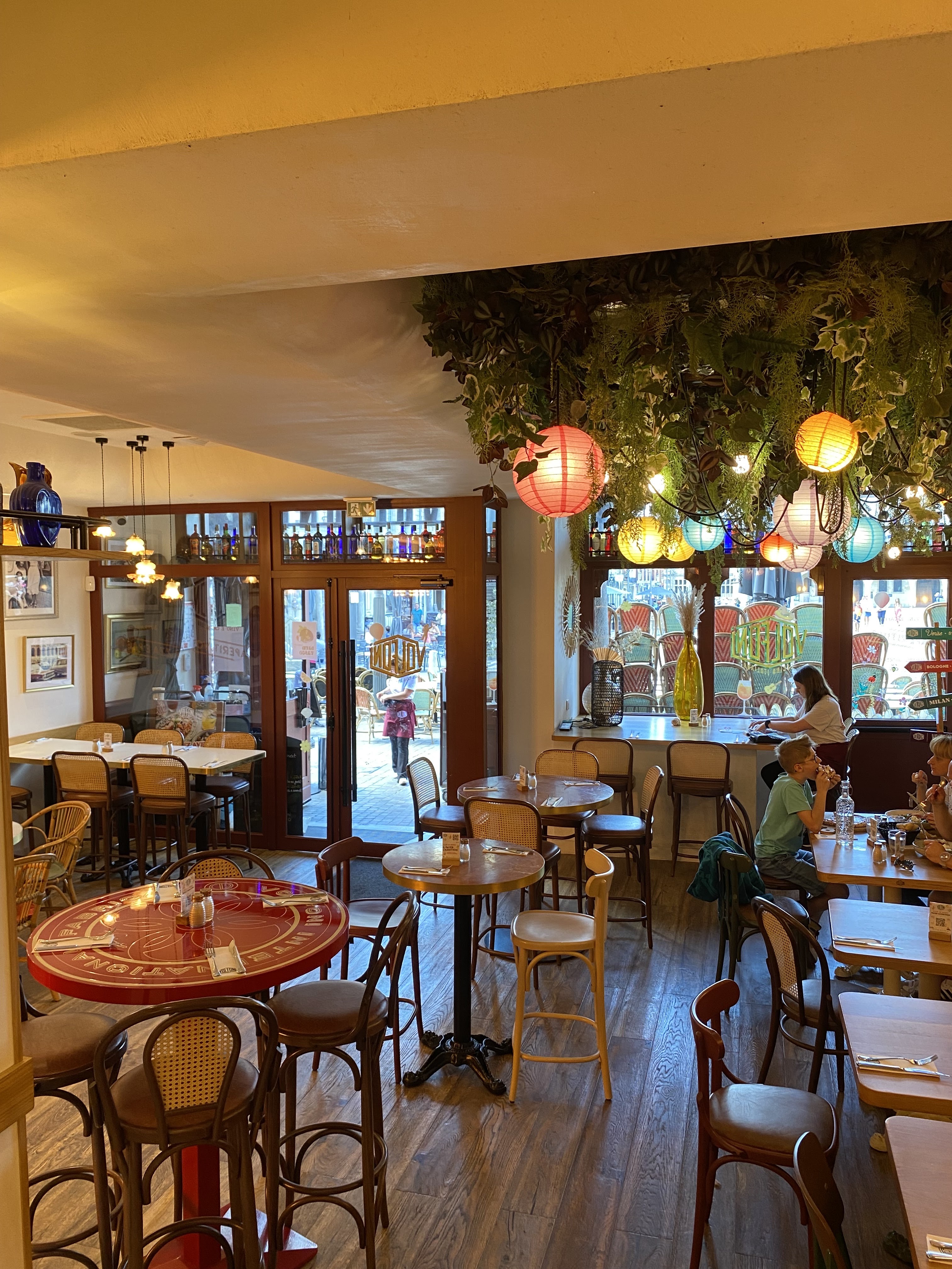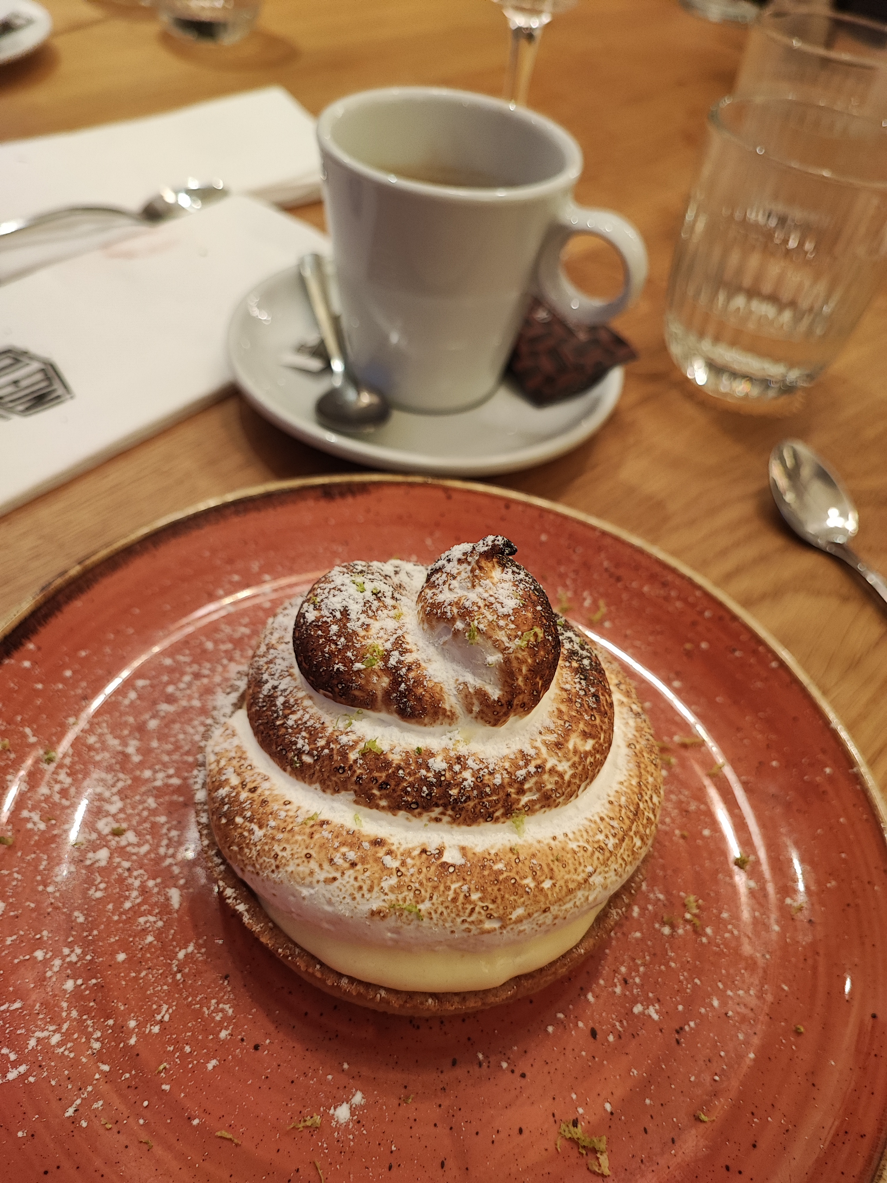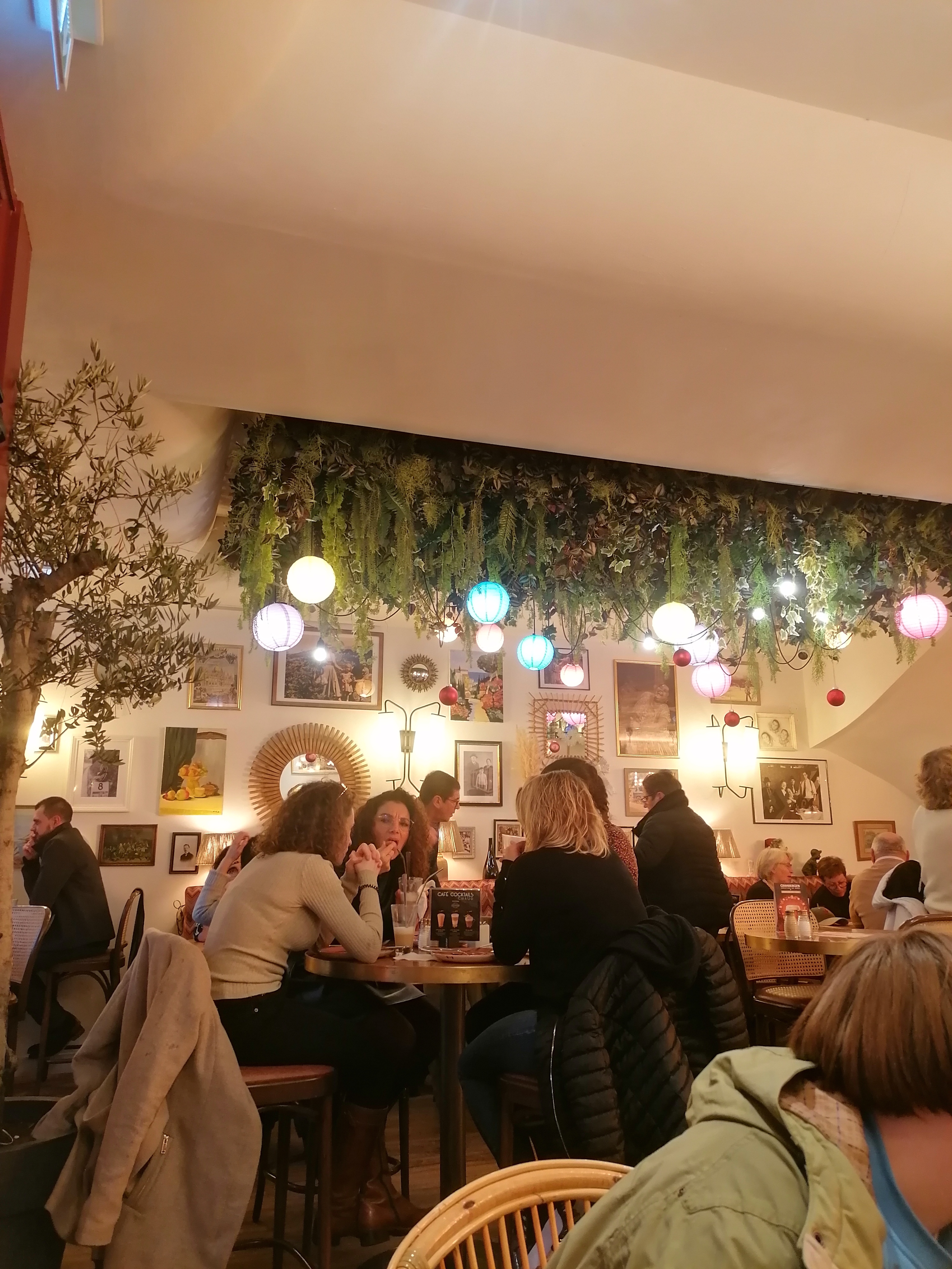 Il n’y avait pas de places pour déjeuner ou dîner le week-end alors nous n’avons pas pu y aller à ces moments là mais nous sommes passés pour un chocolat chaud et une crêpe (qui n’est jamais arrivée malheureusement). Chocolat chaud délicieux en revanche service qui laisse à désirer du fait des serveurs et serveuses mal aimables. C’est vraiment dommage et repoussant. Nos crêpes ont été oubliées, nous sommes partis juste après le chocolat (après 30min au moins) et on nous a fait sentir que le problème venait de nous. Pas très commercial. À tester sur les services du déjeuner et dîner j’imagine.