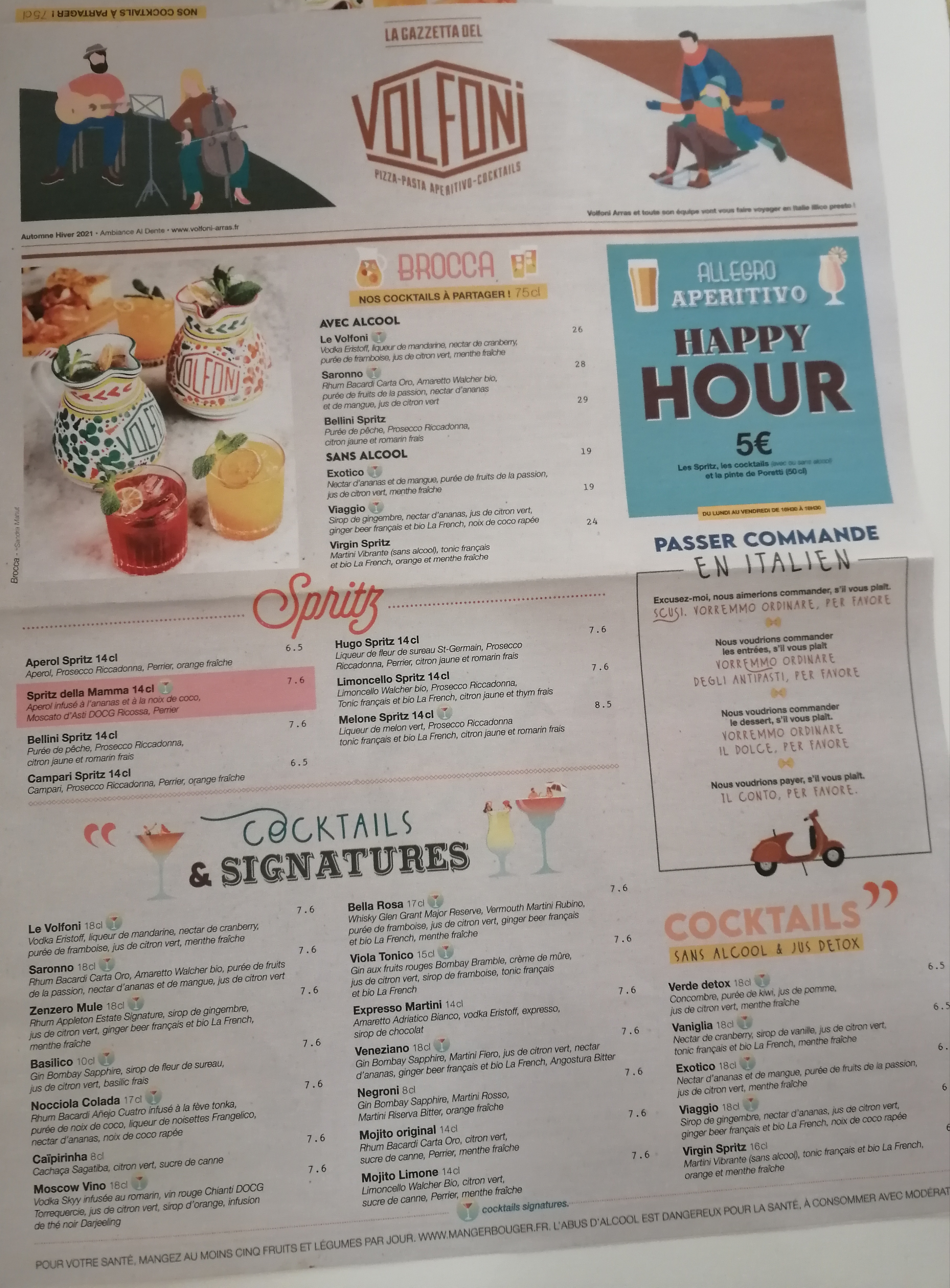 Je ne suis jamais déçue de mon passage au Volfoni. La carte change régulièrement, proposant des plats tout à fait délicieux et originaux. Les cocktails sont également excellents. Je recommande vivement ce restaurant en face du beffroi si vous visitez à Arras !