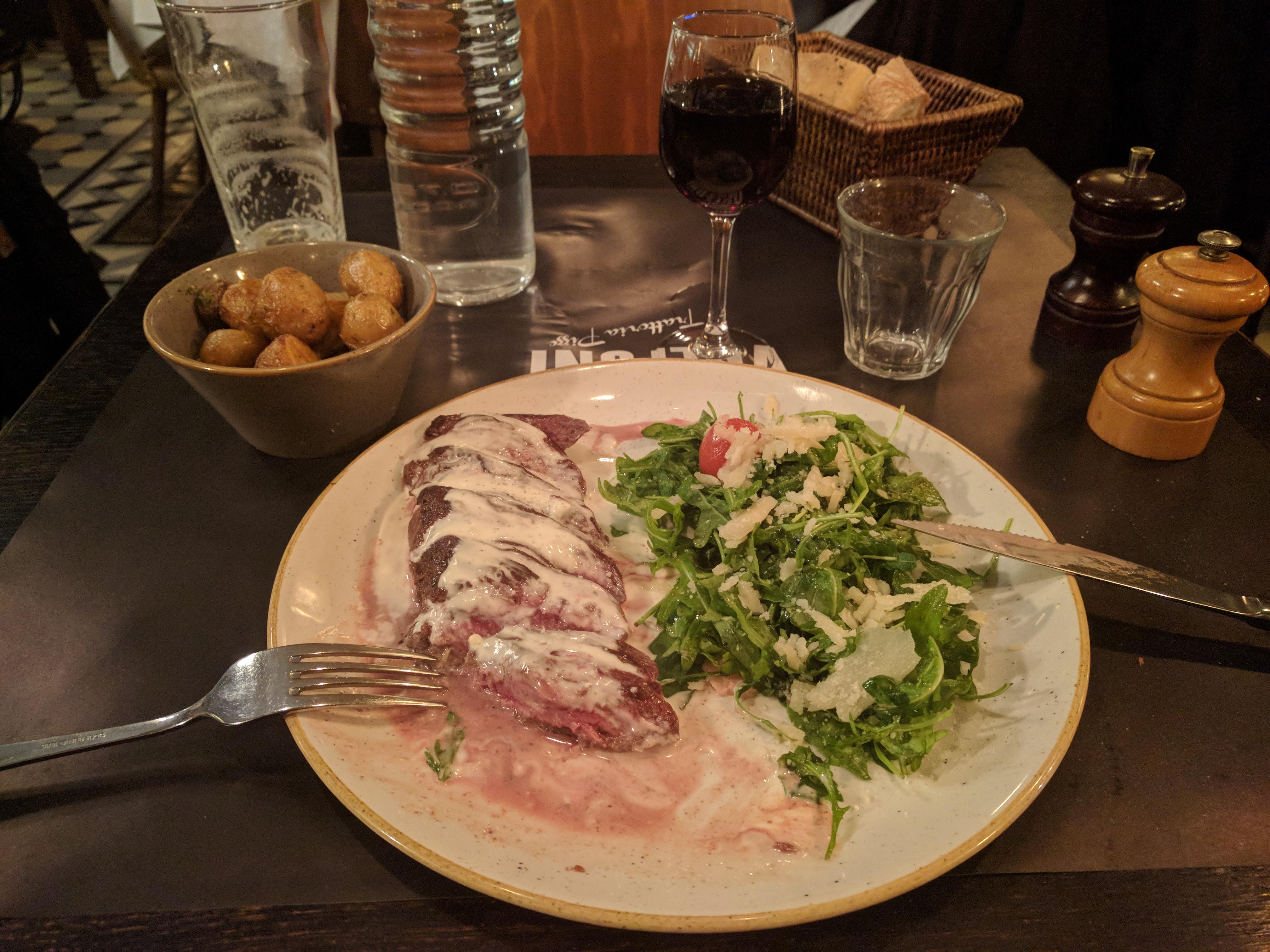 Carte très correcte mais le service! Nous étions sur une table basse à côté du bar: 2 ou 3 verres cassés en 2 heures; des plats posés brutalement la table en poussant tout ce qui gêne et sans avertissement; un serveur surjouant l'accent italien (lourd!). Dommage car pizza au top et dessert vraiment bon.