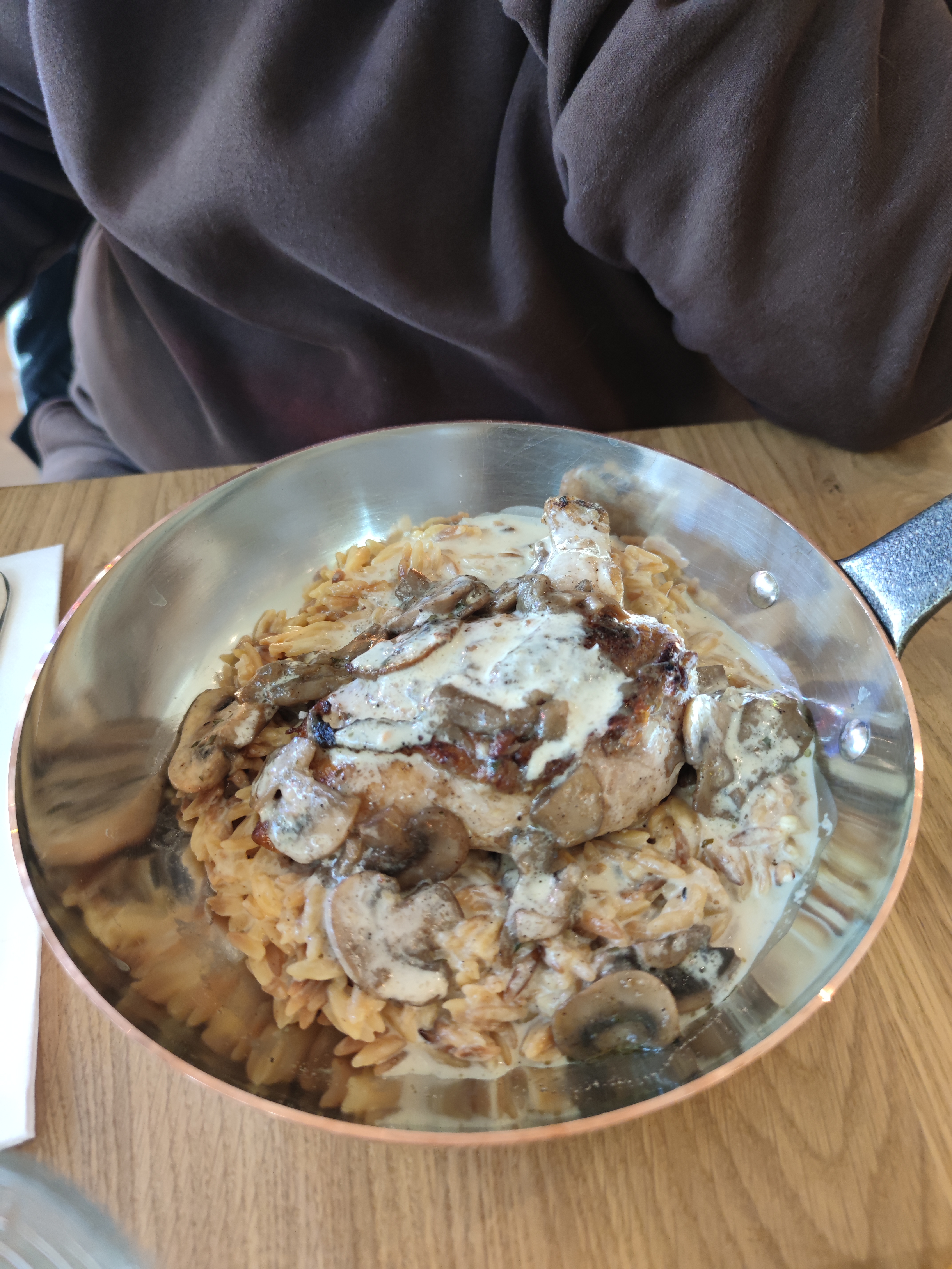 Serveuse très serviable et souriante . Les plats sont assez lourd et gras , ça manque un peu de légèreté .. Gros point positif pour le dessert des beignets . Petit bémol, pas de jeux proposés à table pour les enfants . Dommage , car aujourd’hui on en trouve partout ( cahier avec crayons ).