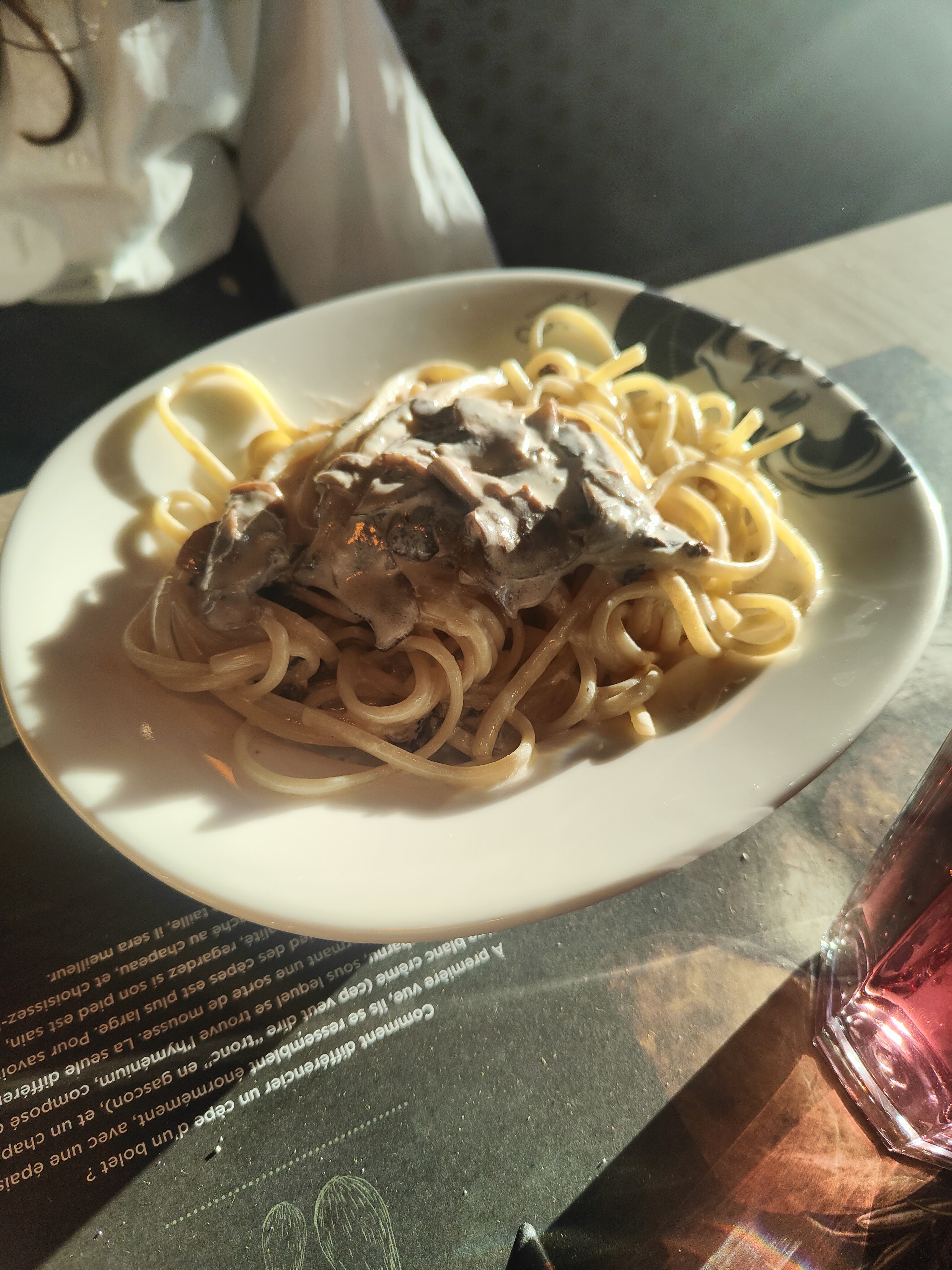 Venue pour la première fois, mon mari a pris des liguini al aglio et a beaucoup aimé pour ma part j'ai pris des raviolis avec sa sauce de cèpe et aussi très bon , en revanche dommage pour le capucino que pour moi ce n'était pas vraiment ça.